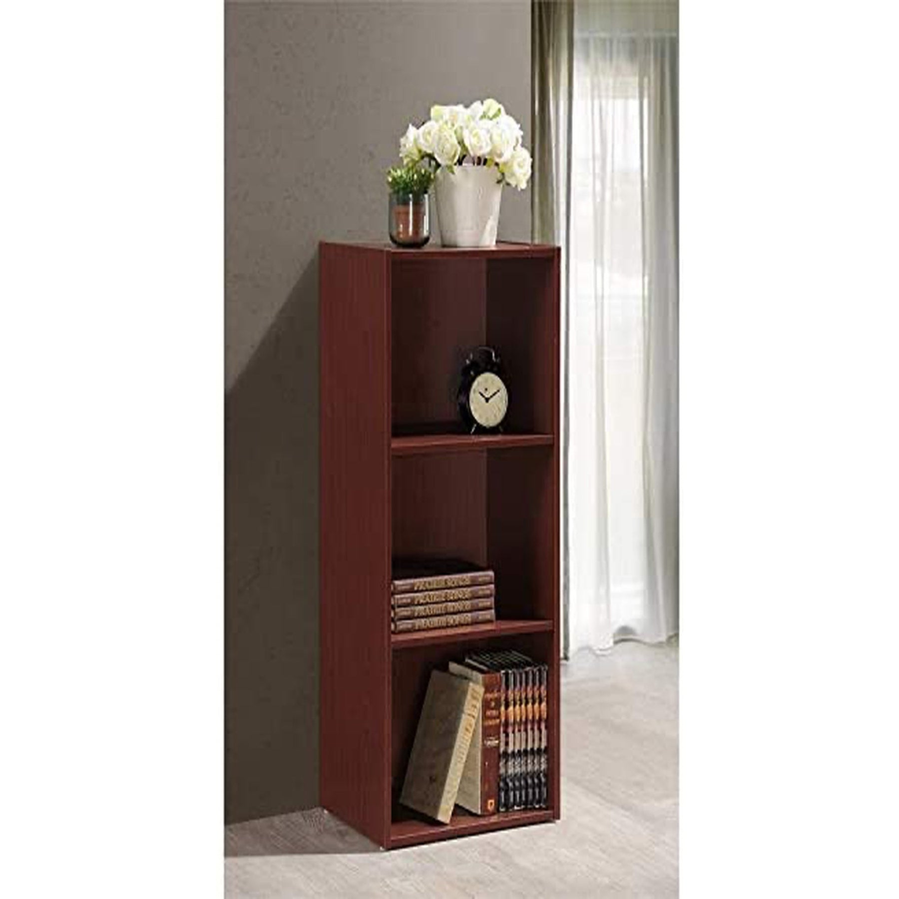 • Durable red mahogany wood finish will complement other home decor and furniture in the living room, bedroom, or kitchen