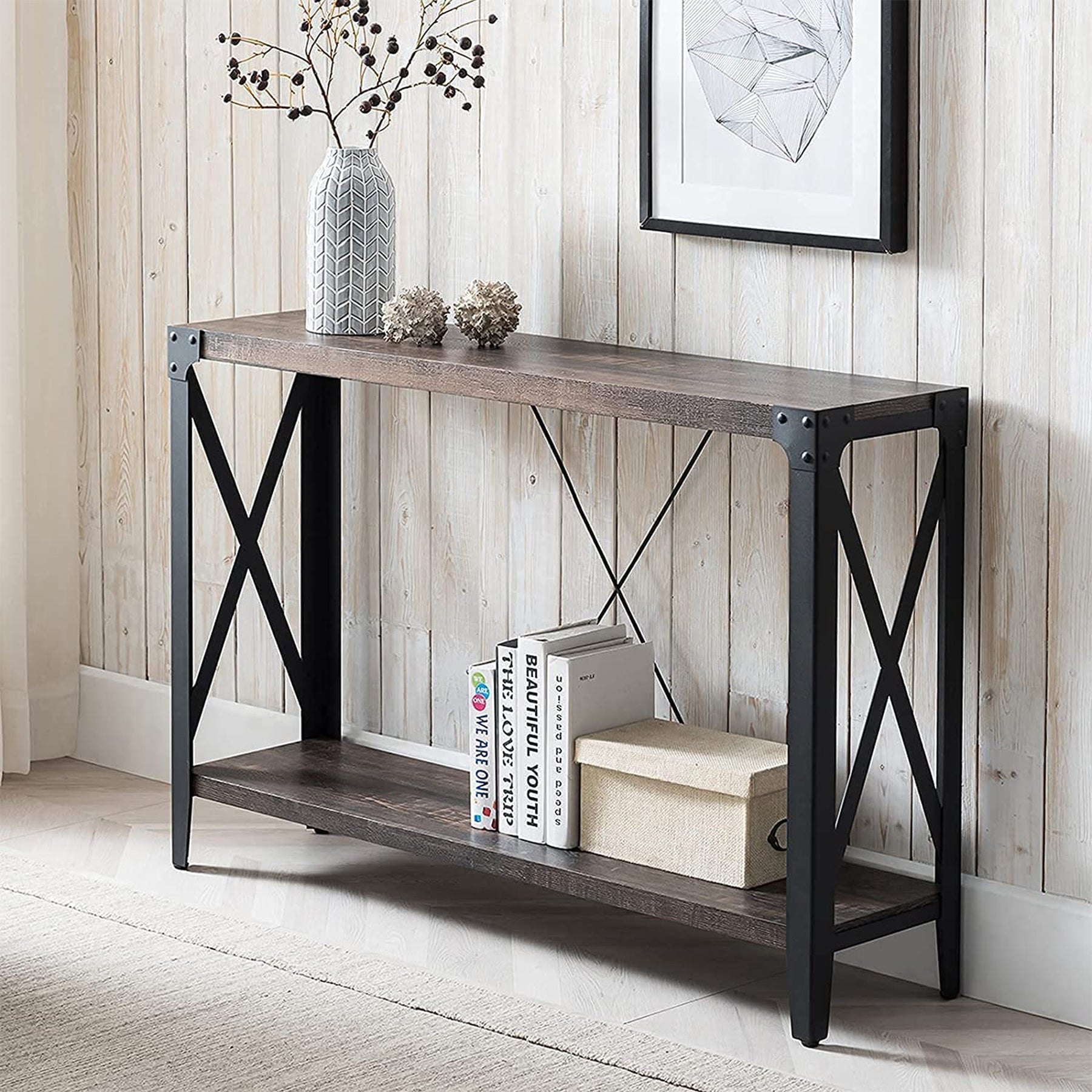 46 in. 2-Tier Console Accent Table, Dark Rustic Oak (Open Box)