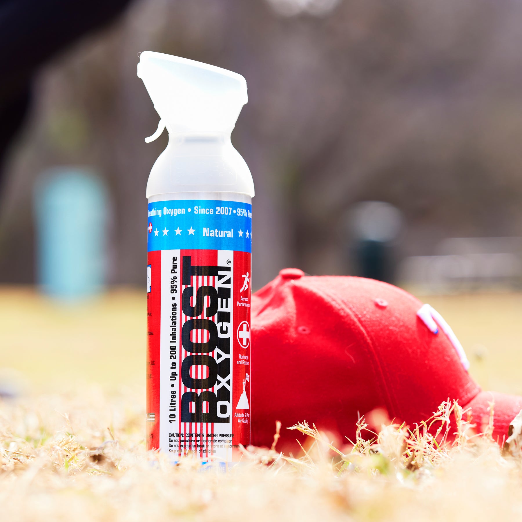 Introduce more oxygen to your life and lungs with the Boost Oxygen 10-Liter Special Edition Stars and Stripes Canned Oxygen Canister.