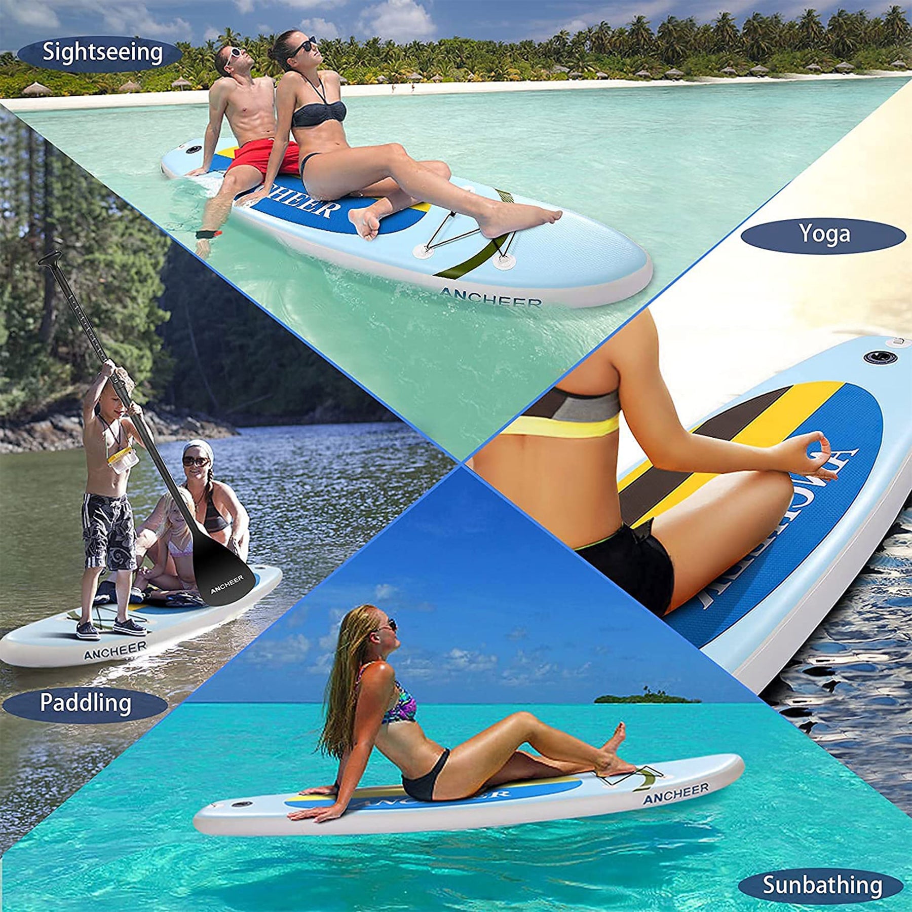 • Stand up paddle board is ideal for people of all skill levels to cruise, fish, or do yoga out on the water