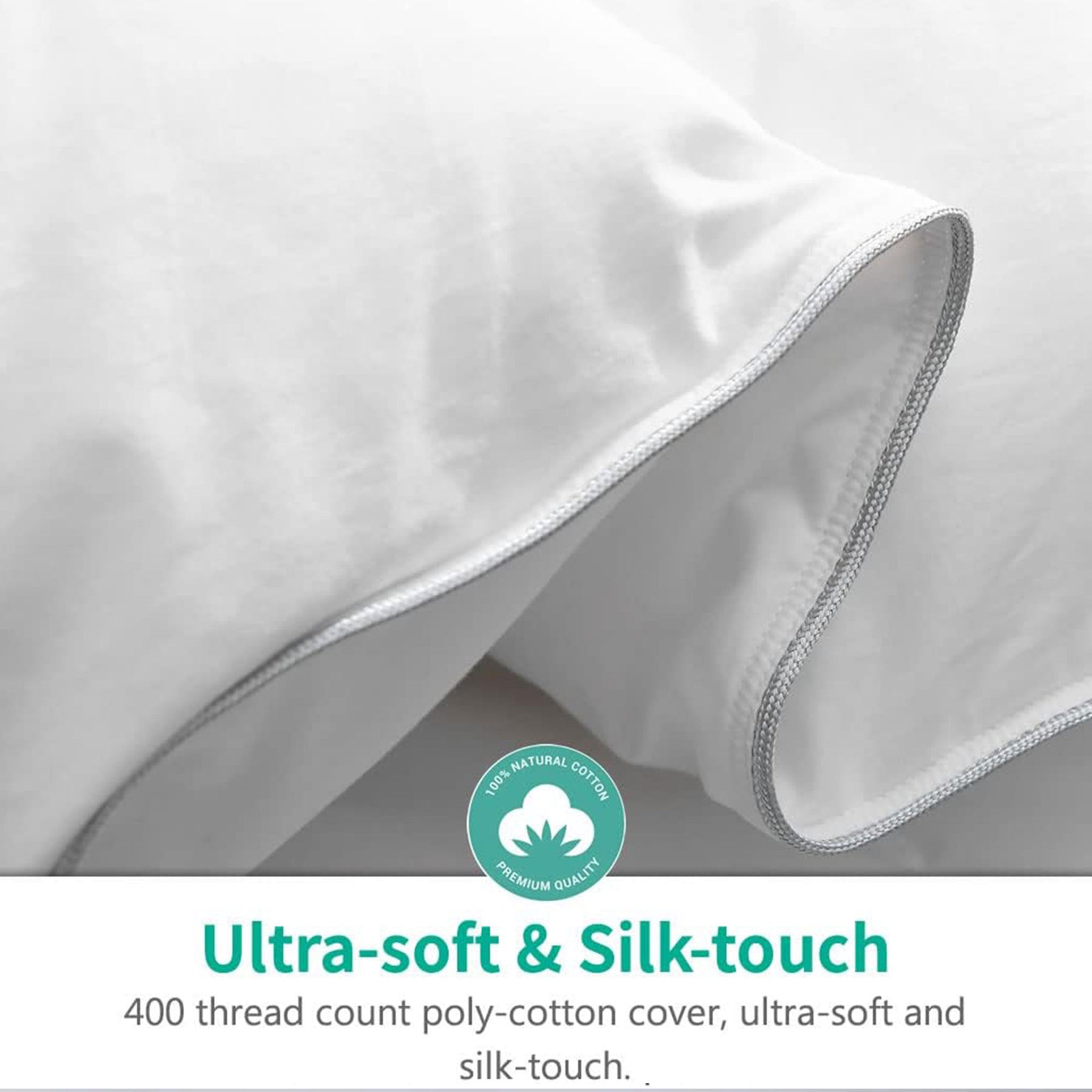 • Made from a luxurious ultra-soft 400 thread count poly-cotton blend fabric, offers a noiseless and super cozy night's sleep