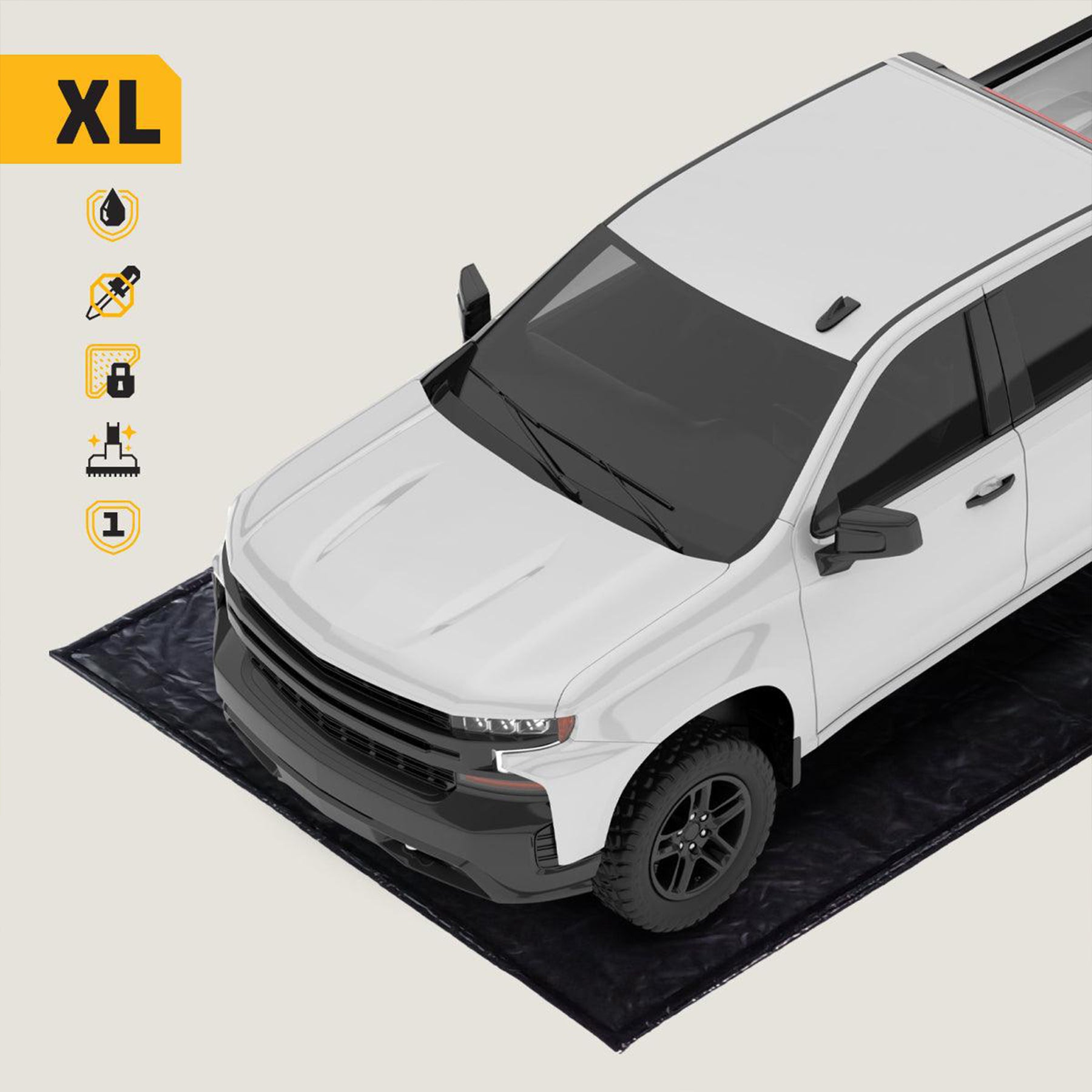 • Extra large garage containment mat protects your garage floor from snow, ice, mud, and debris from your vehicle