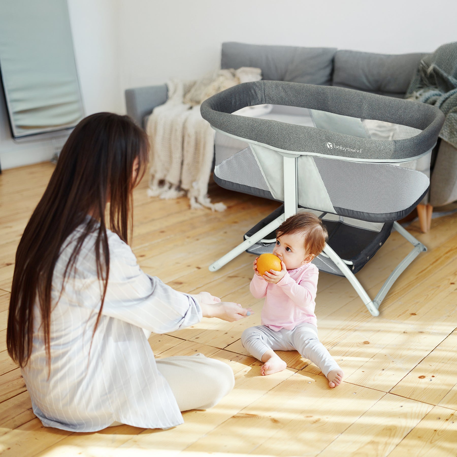 Baby Trend Quick-Fold 2-in-1 Rocking Bassinet, Portable Sleeper, Gray (Open Box)