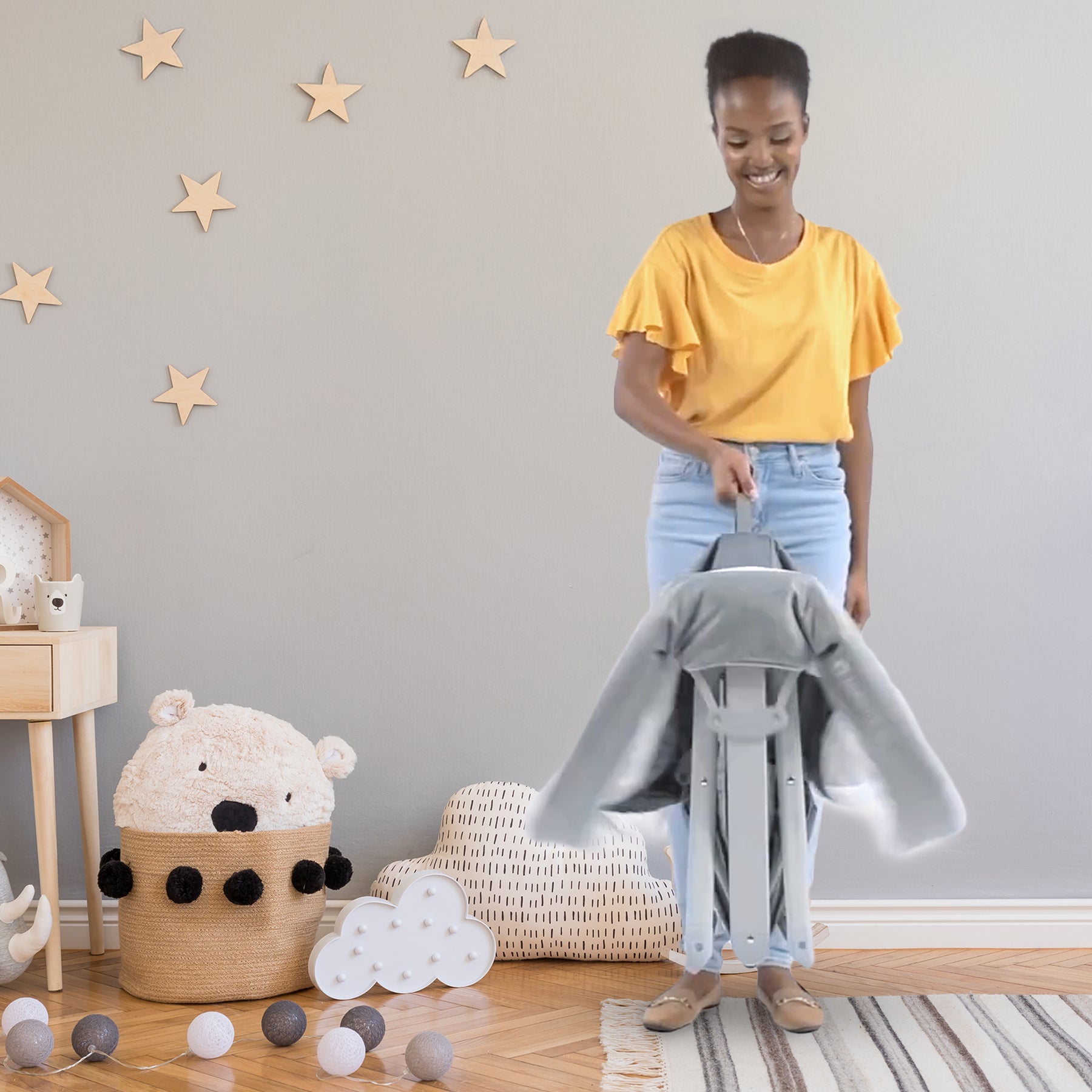 • Quick-Fold 2-in-1 Rocking Bassinet is designed with an innovative quick-fold mechanism, allowing for easy setup and putting away.