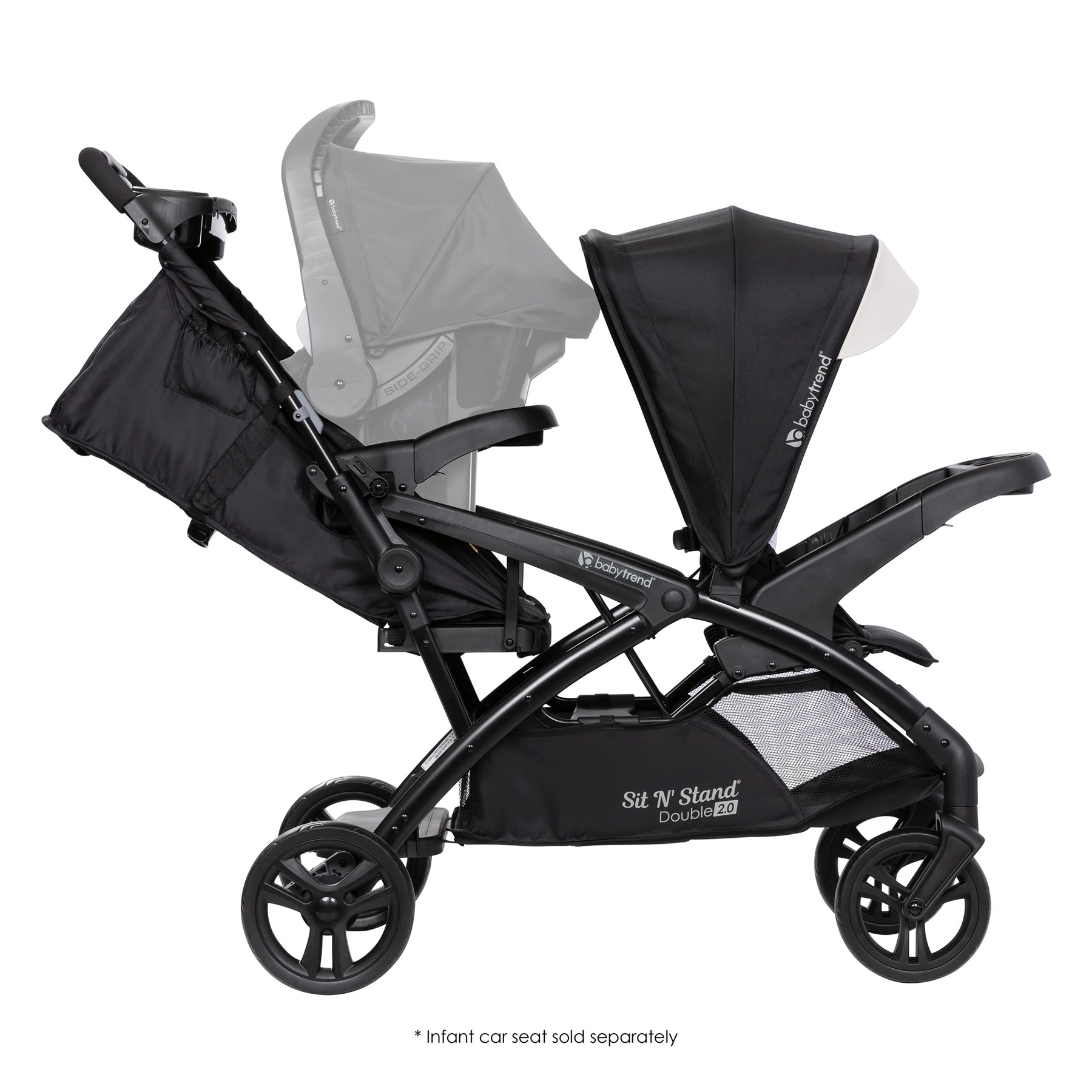 • Children can sit in the front and rear seats of the stroller or stand on the rear platform; Compatible baby trend car seats