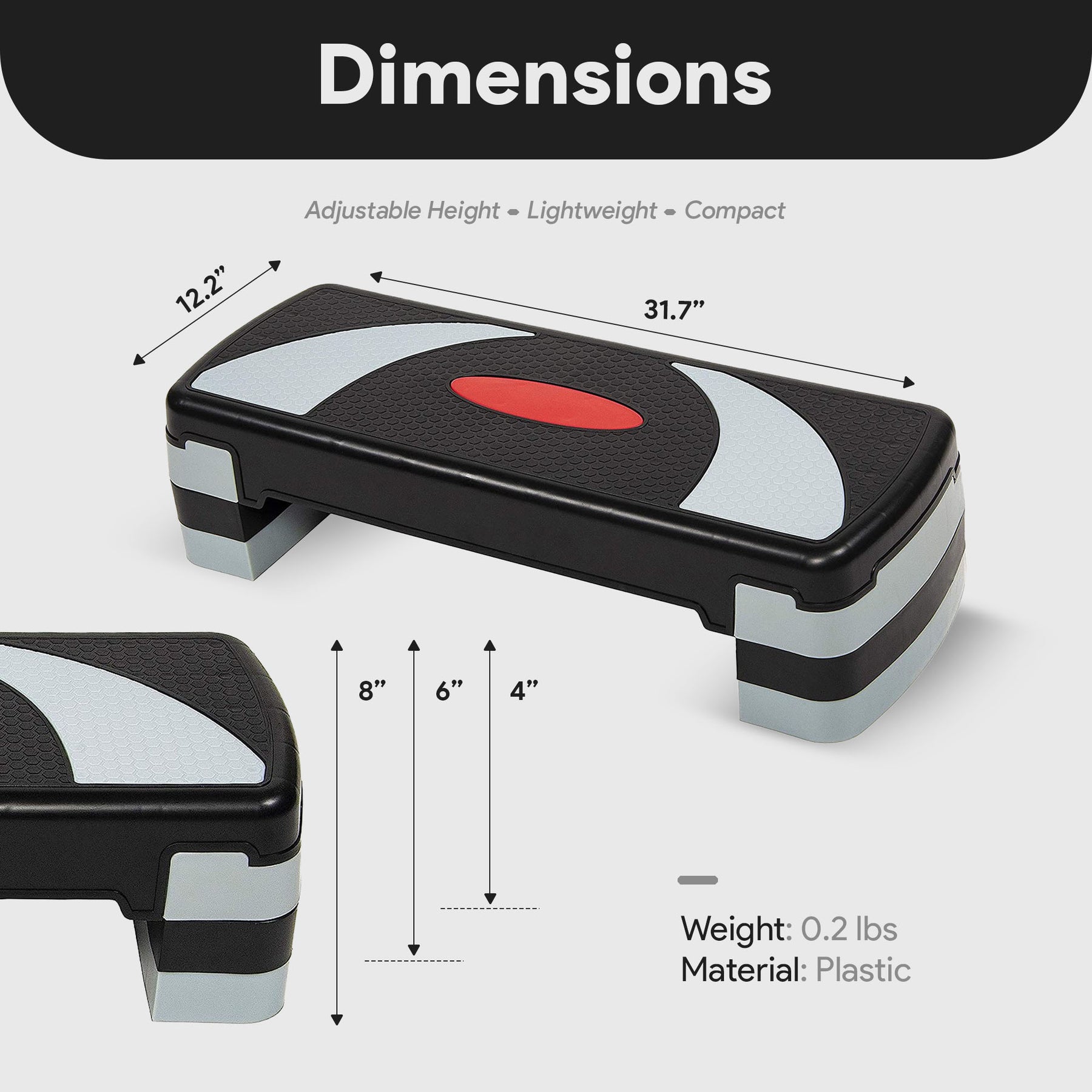 • Step platform trainer with adjustable raisers included; Customize the platform height to 4, 6, or 8 inches tall based on your needs