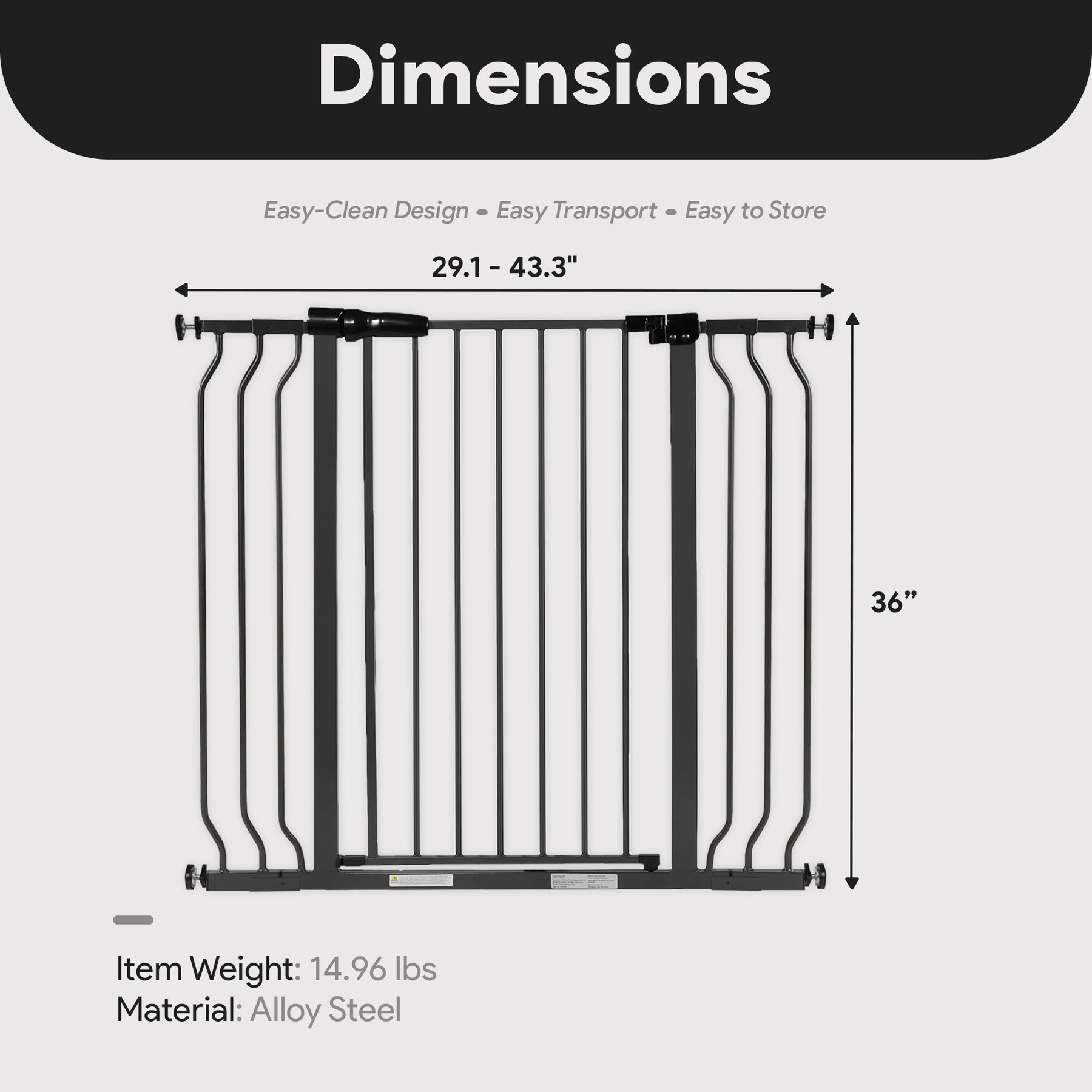 • Adjustable 29.1 to 43.3-inch frame essential and stands 36 inches tall for providing a complete barrier for both toddlers and your furry family members