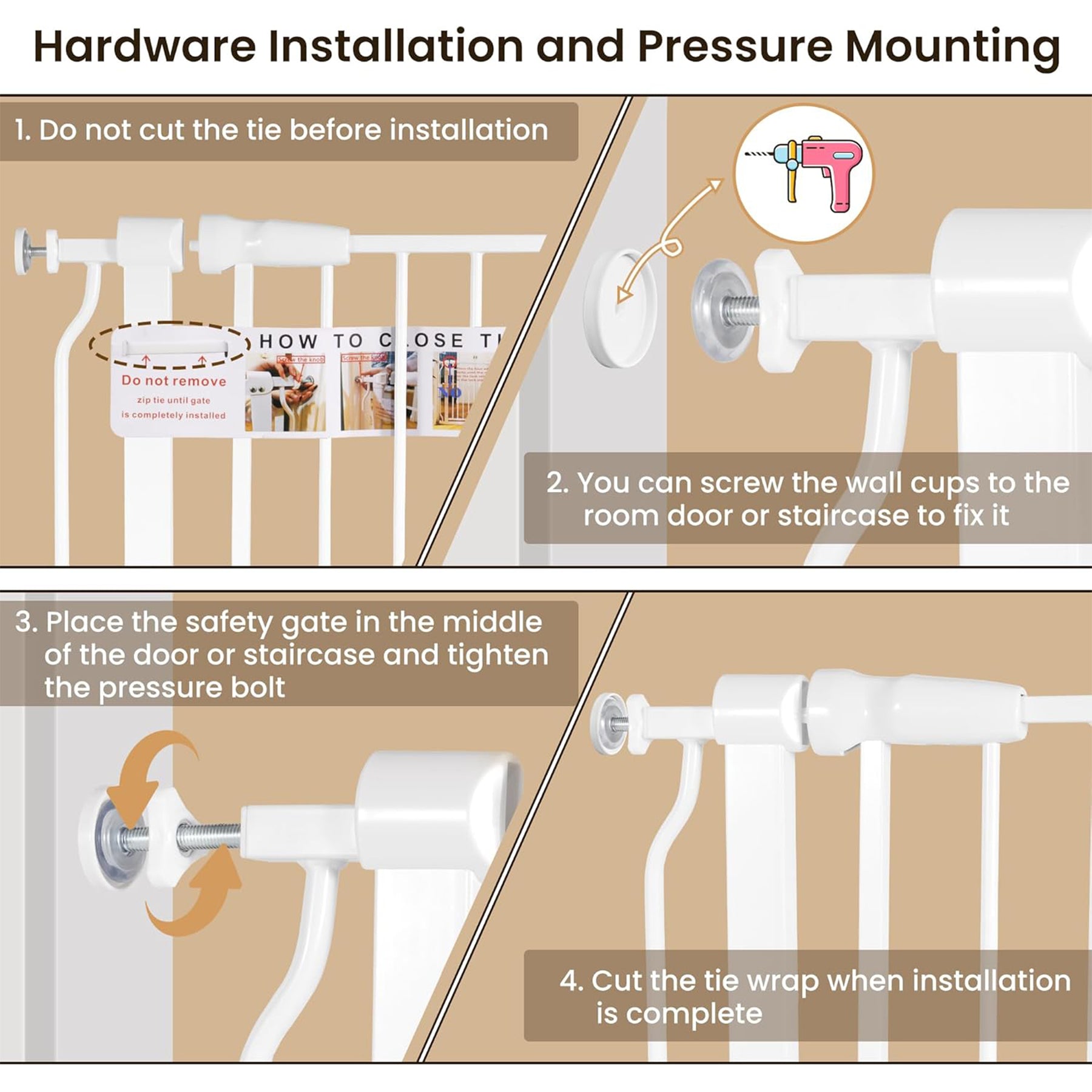 • Wall-to-wall auto-close baby and pet gate is ideal for keeping your family safe and sound