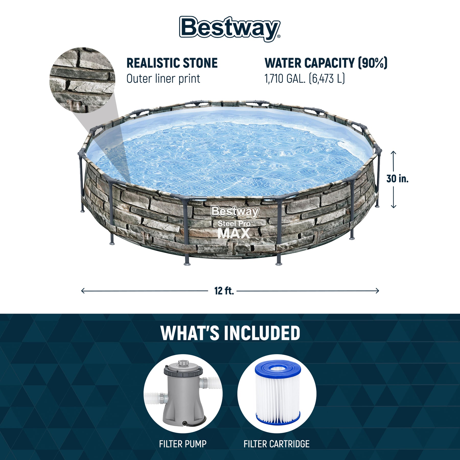 - Bestway 12-foot x 30-inch outdoor above-ground pool designed for fun and relaxation all summer long