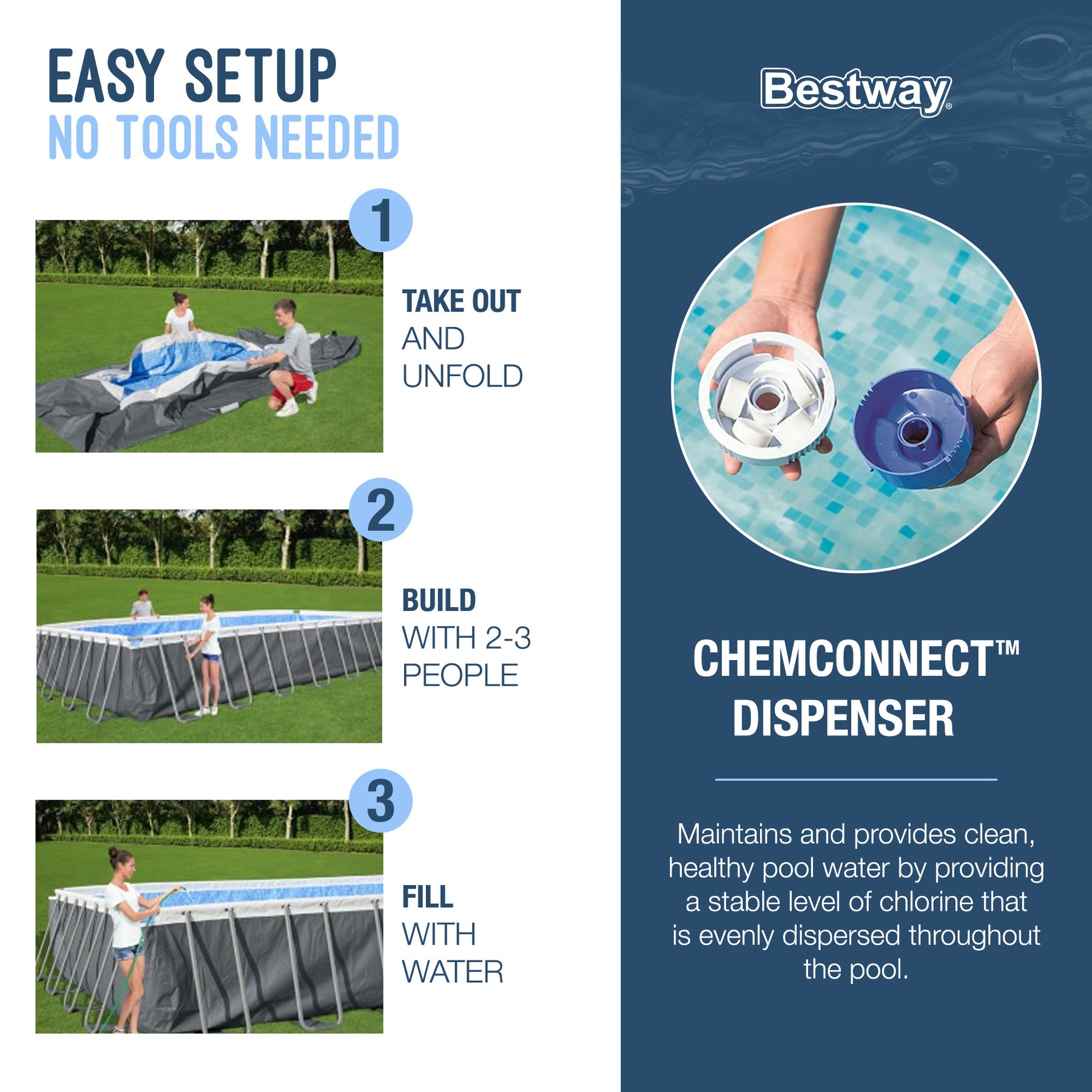 • ChemConnect dispenser maintains clean, healthy pool water by providing stable levels of chlorine that's evenly dispersed throughout the pool