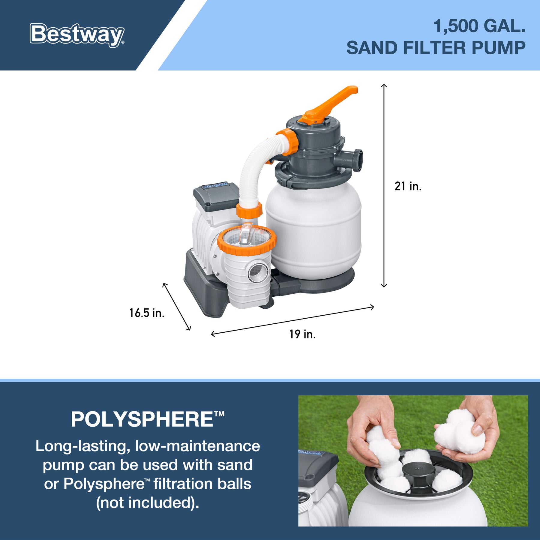 • Includes a 1,500 GPH sand filter pump, a ladder, and a convenient secure pool cover