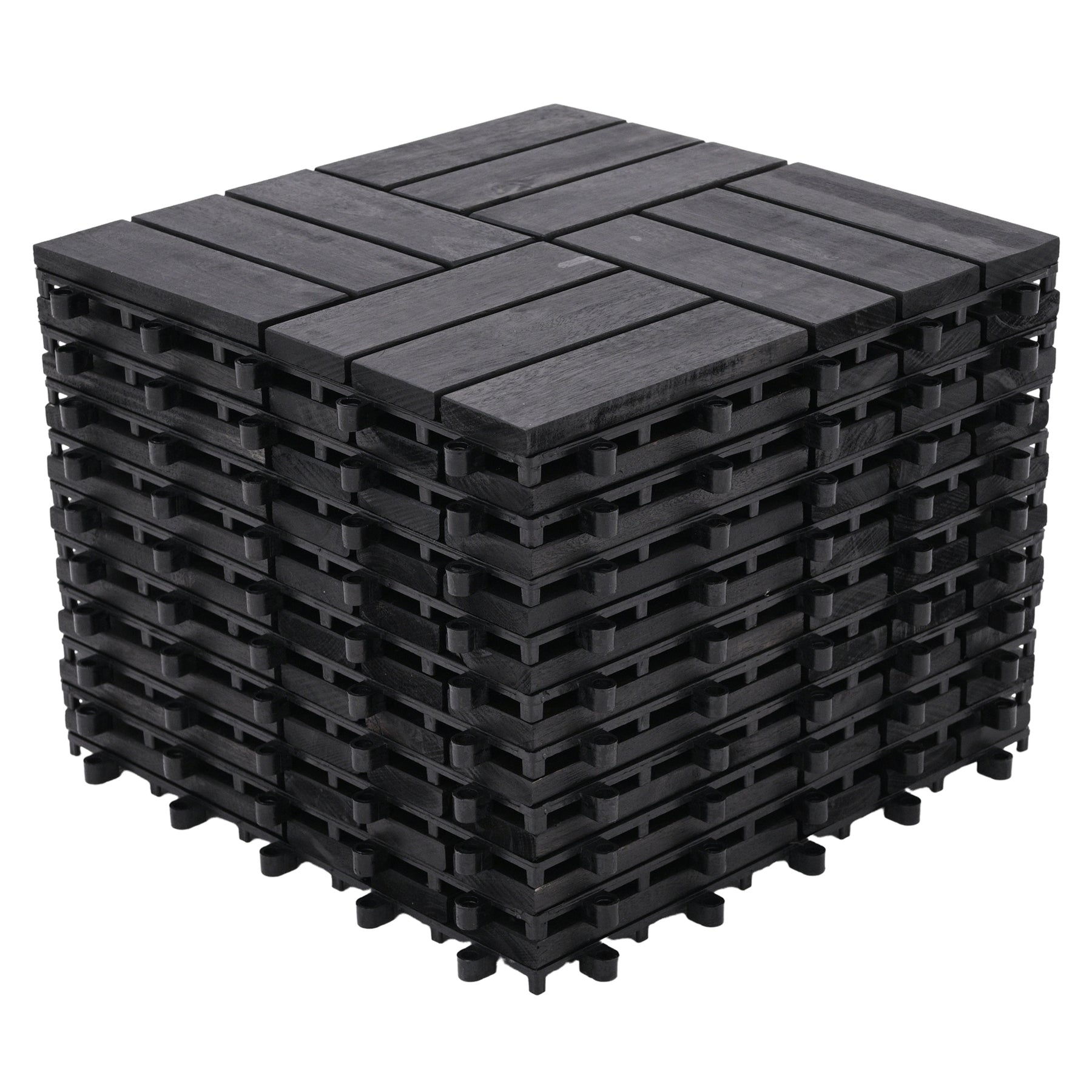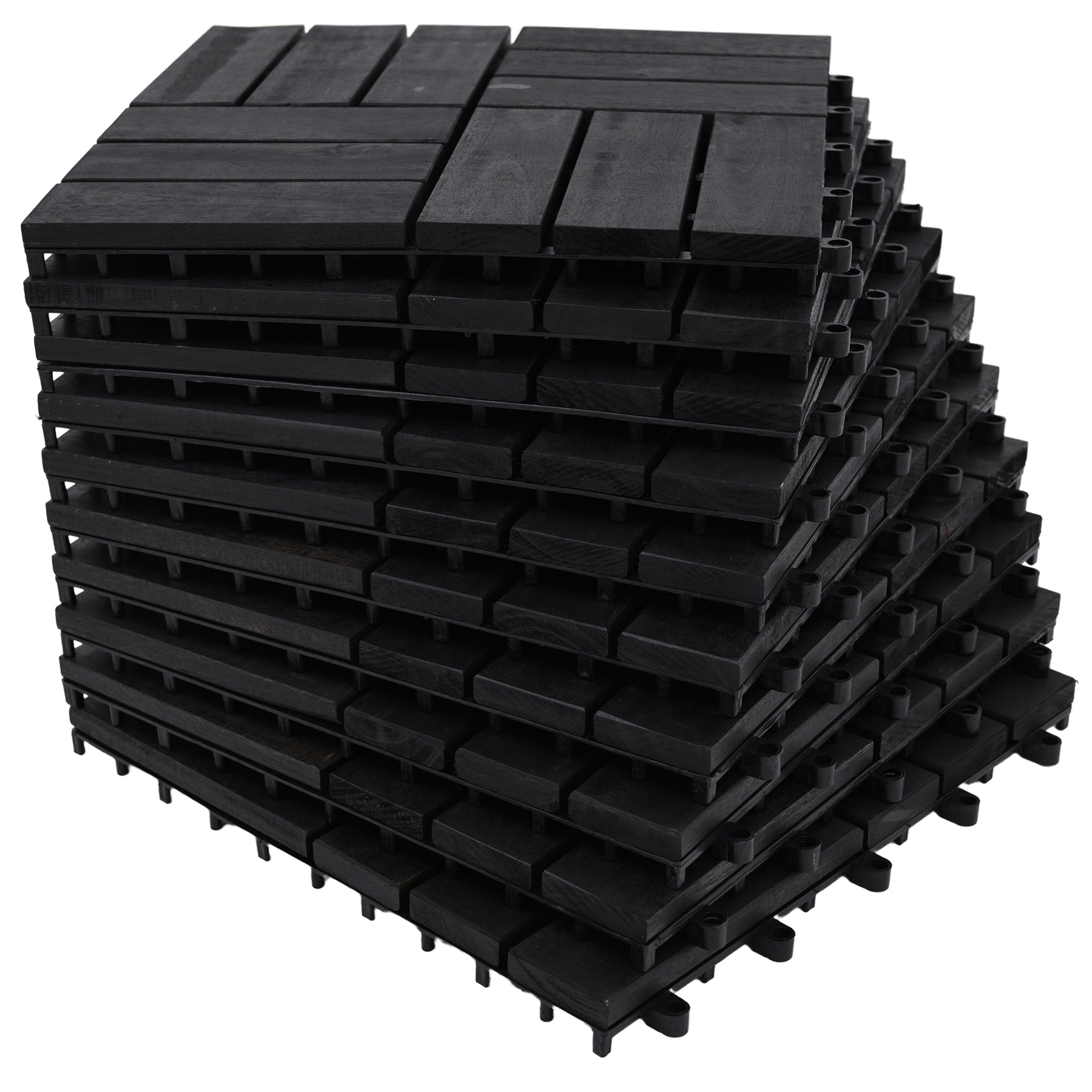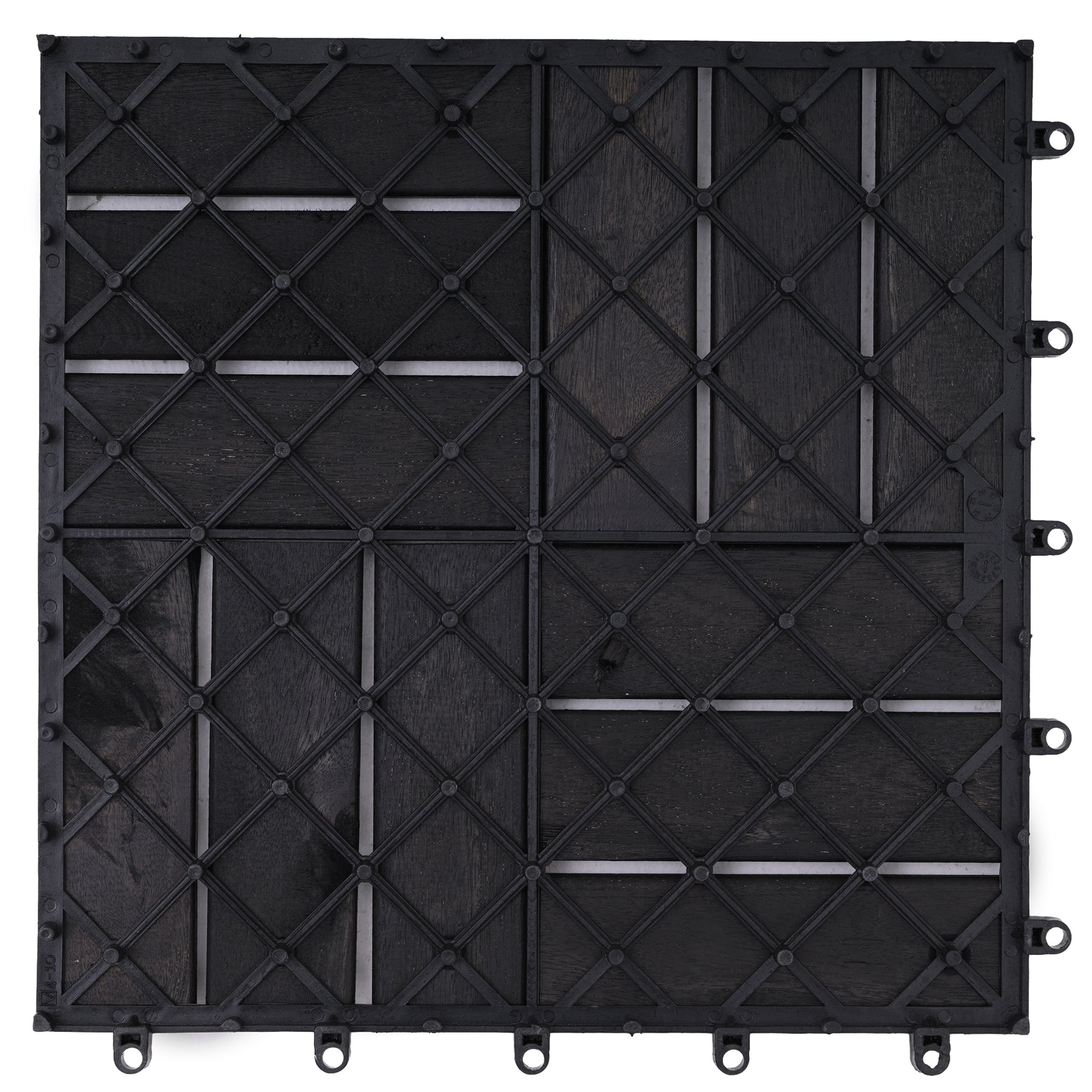 Bliss Outdoors Hardwood 12-Slat Interlock Wood Deck Tiles, Aged Black (Open Box)