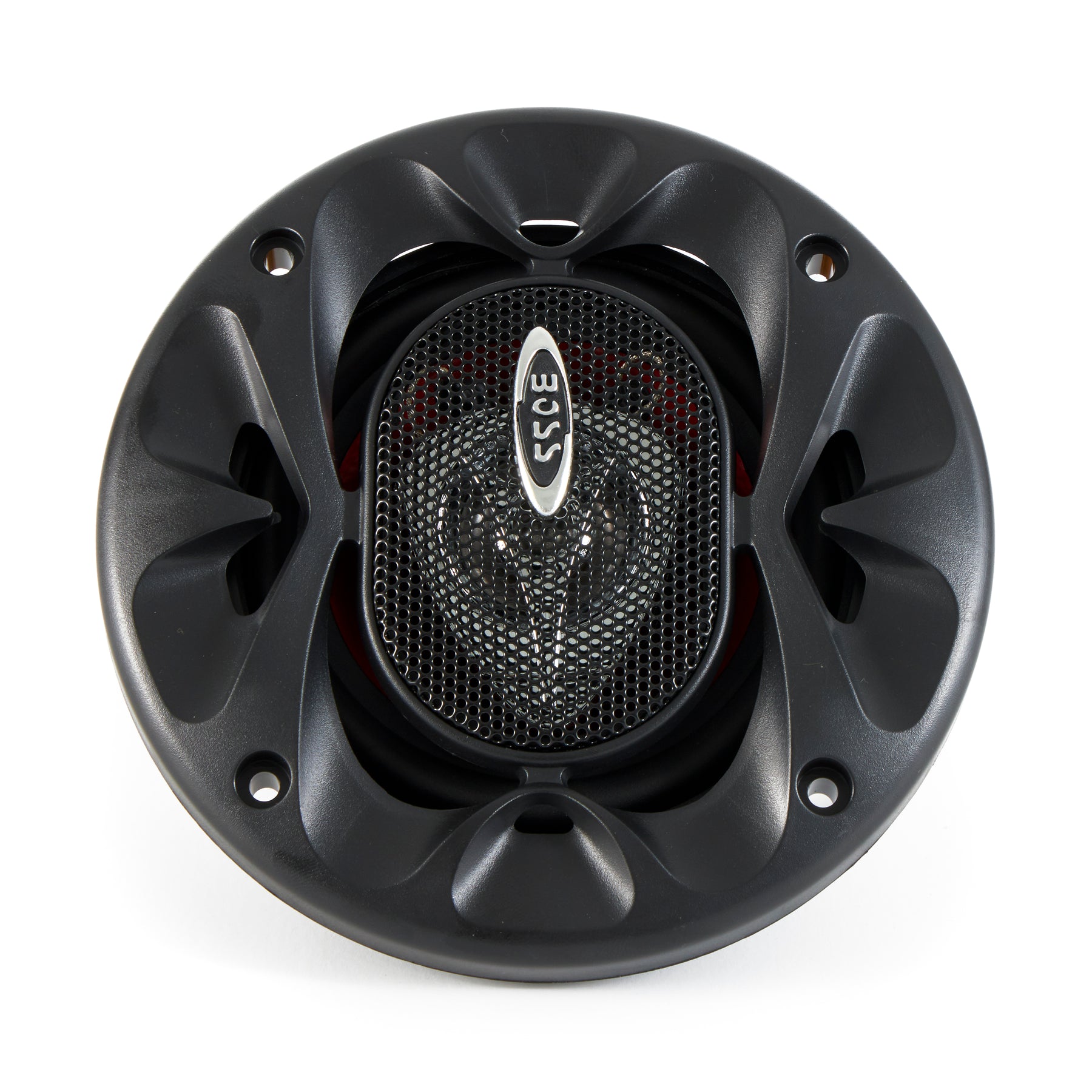 The **Boss CH4220** speakers each deliver 200 watts at max power, providing deep bass and loud crisp sound without any distortion. Each speaker features a red poly injected, 1 inch cone, with foam surrounding and a 1 inch, High-Temperature, Aluminum Voice coil. They each have 100 watts RMS power for loud clear audio, plus they have a mounting depth just over 1 1/2 inches.