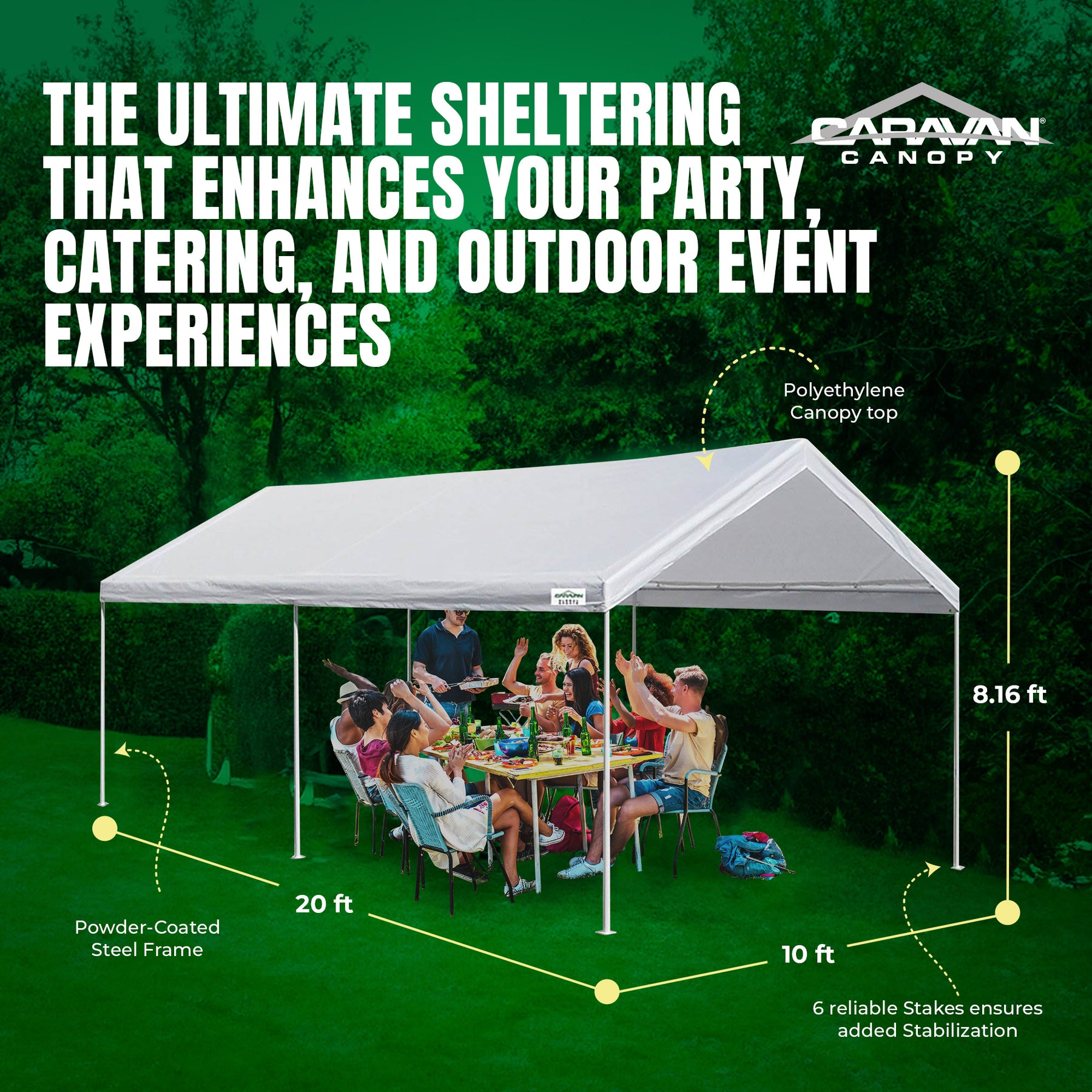 It's time to start doing more outdoor fun with your canopies, gazebos & pergolas and take shelter from the sun. Order the Caravan Canopy Domain 10x20 Carport and prepare for memorable days, rain or shine.