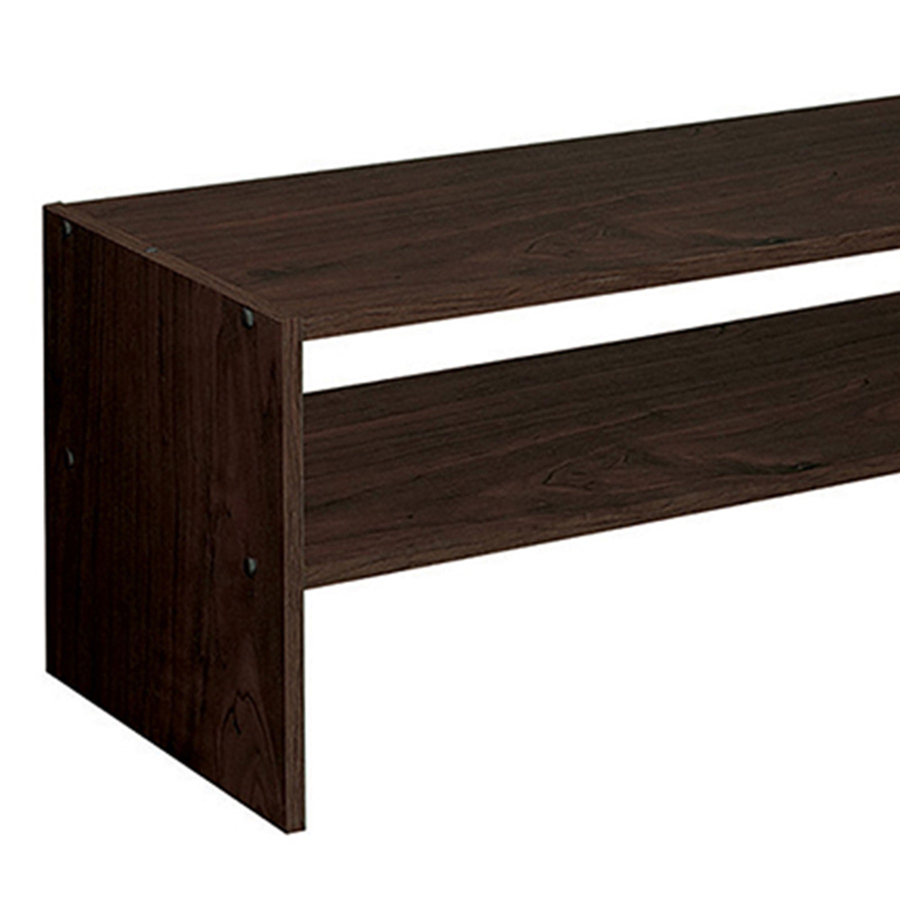 Constructed of tough and durable laminated wood with a stylish finish, this piece of furniture can seamlessly hold up to 4 pairs of adult shoes on each shelf. With 2 shelves featuring roughly 5 inches of space each, the organizer can easily turn a messy area into a contained one. Place it on the floor for stand-alone shoe storage or stack it with other ClosetMaid stackable shelves for maximum efficiency. Use this multipurpose shelf to store purses and bags, show off collectibles and hobbies, or manage books and office supplies.