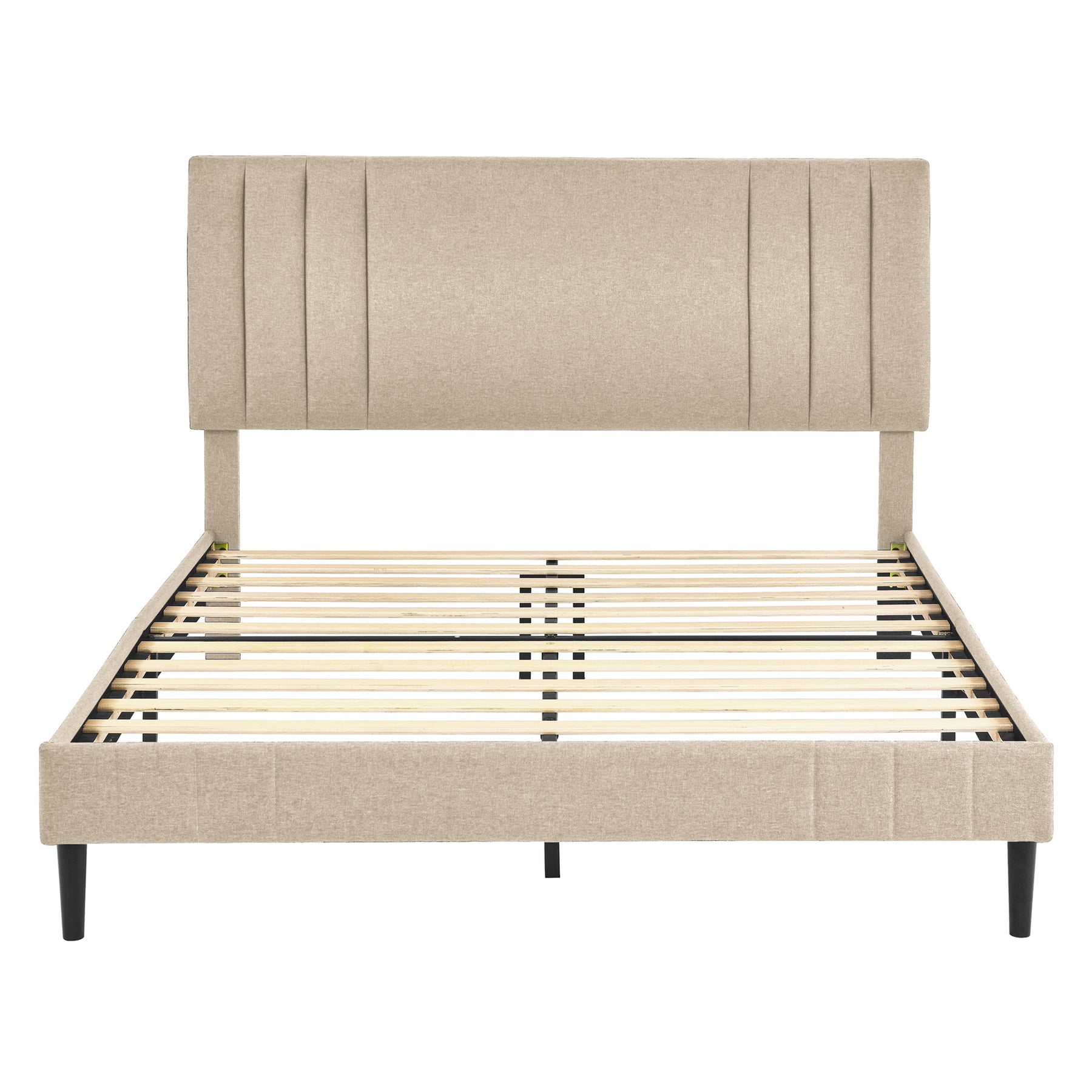 • Upholstered bed frame with durable wood slats provides stability and eliminates box spring need
