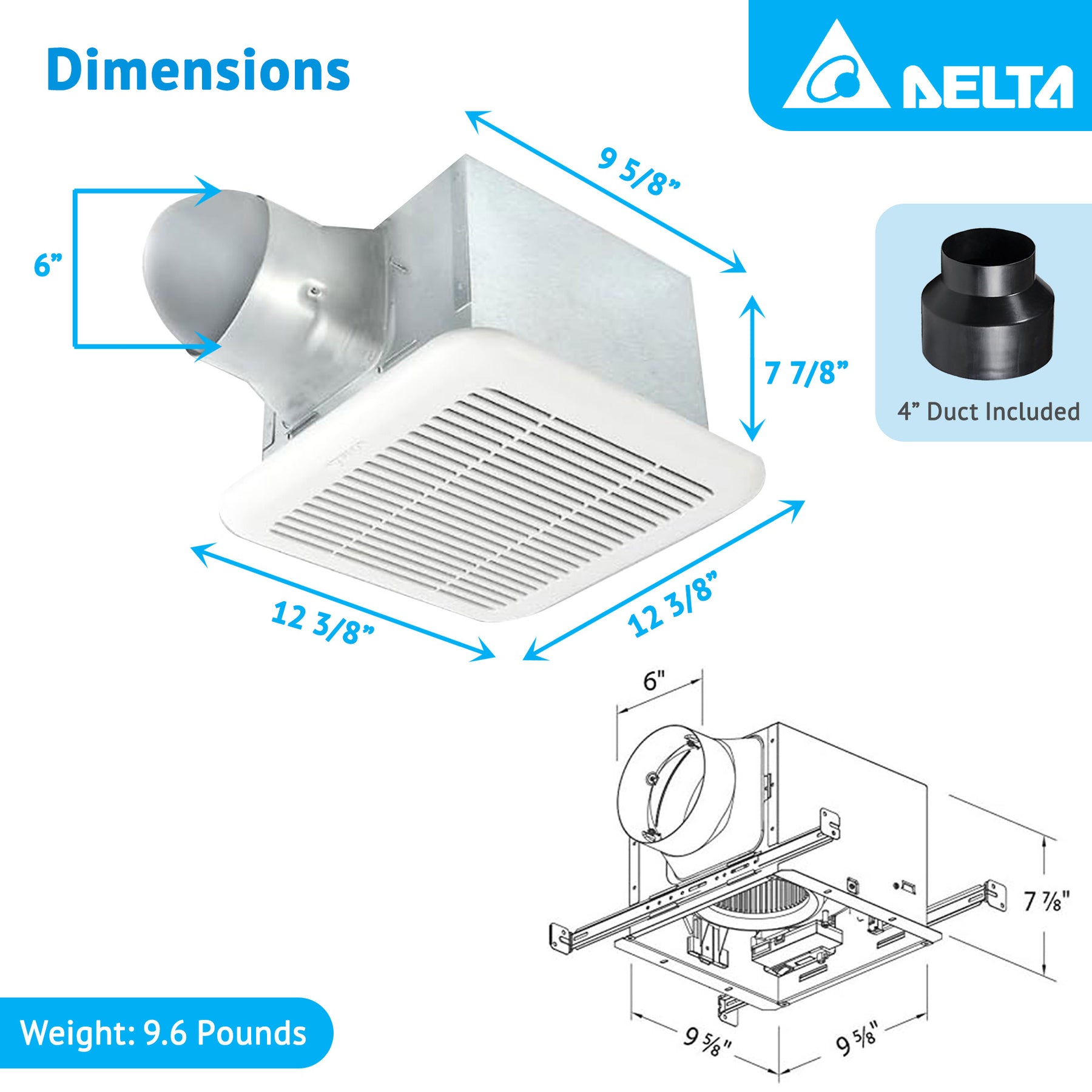 • Includes a 6-inch to 4-inch duct reducer, making it simple to install in a variety of setups, ensuring compatibility with your existing ductwork