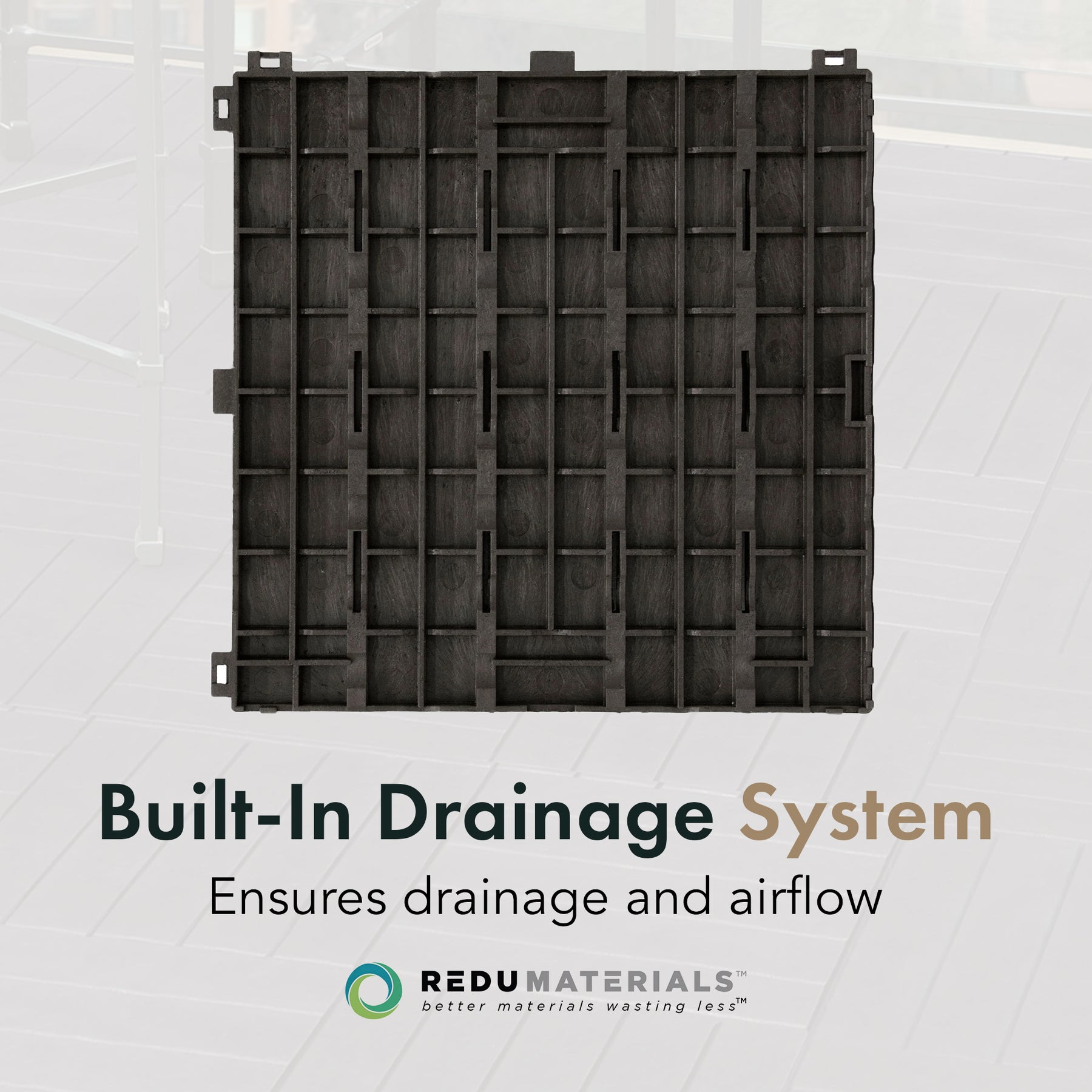 - Underside grid design promotes water drainage, preventing moisture build-up and allowing air circulation for a long-lasting, dry surface