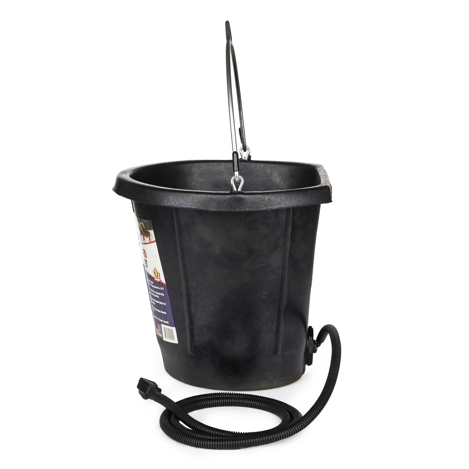 • 12-quart, rubber bucket with sturdy metal handle has lasting durability and keeps water from freezing during cold weather