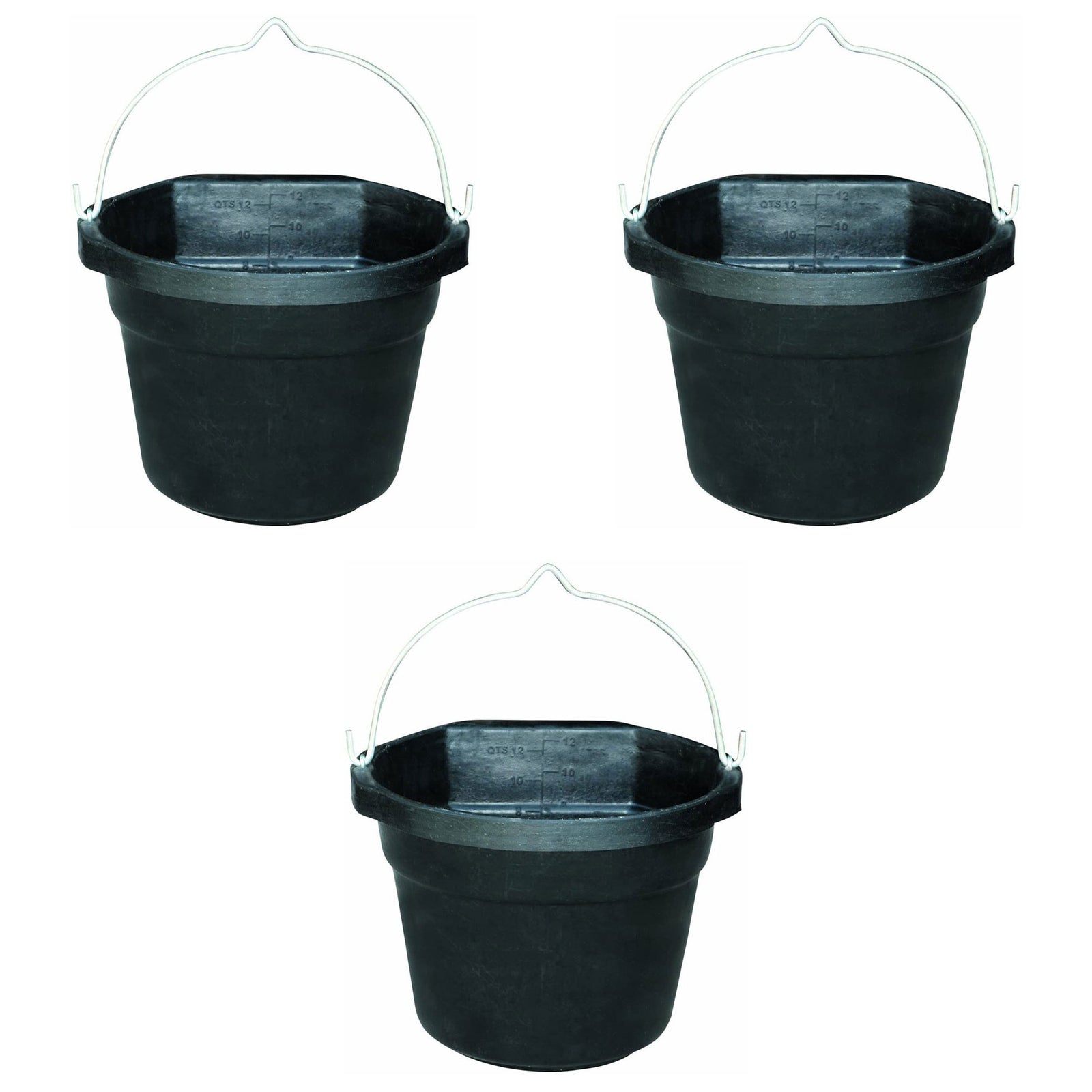 • 12-quart, rubber bucket with sturdy metal handle has lasting durability and keeps water from freezing during cold weather