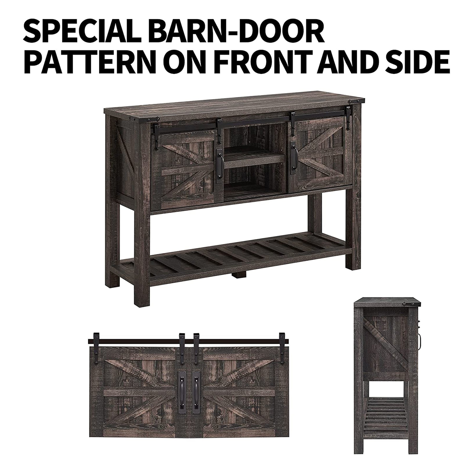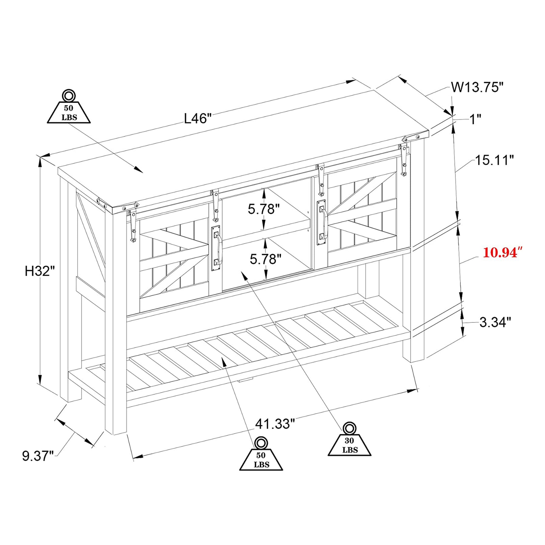 Farmhouse Console Entryway Table w/ Sliding Barn Doors, Rustic Oak (For Parts)
