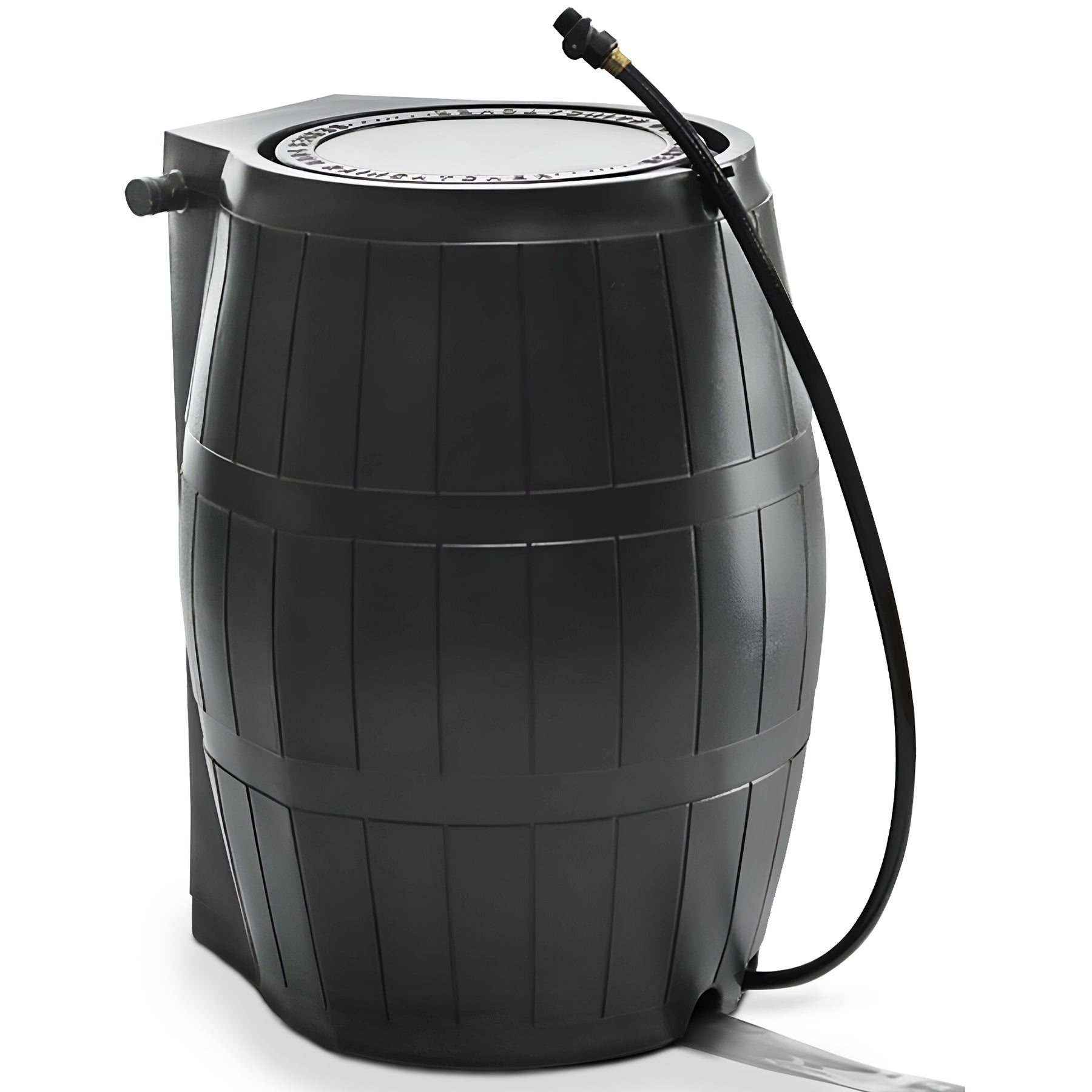 FCMP Outdoor RC4000-BLK 50-Gallon BPA Free Home Rain Water Catcher Barrel, Black