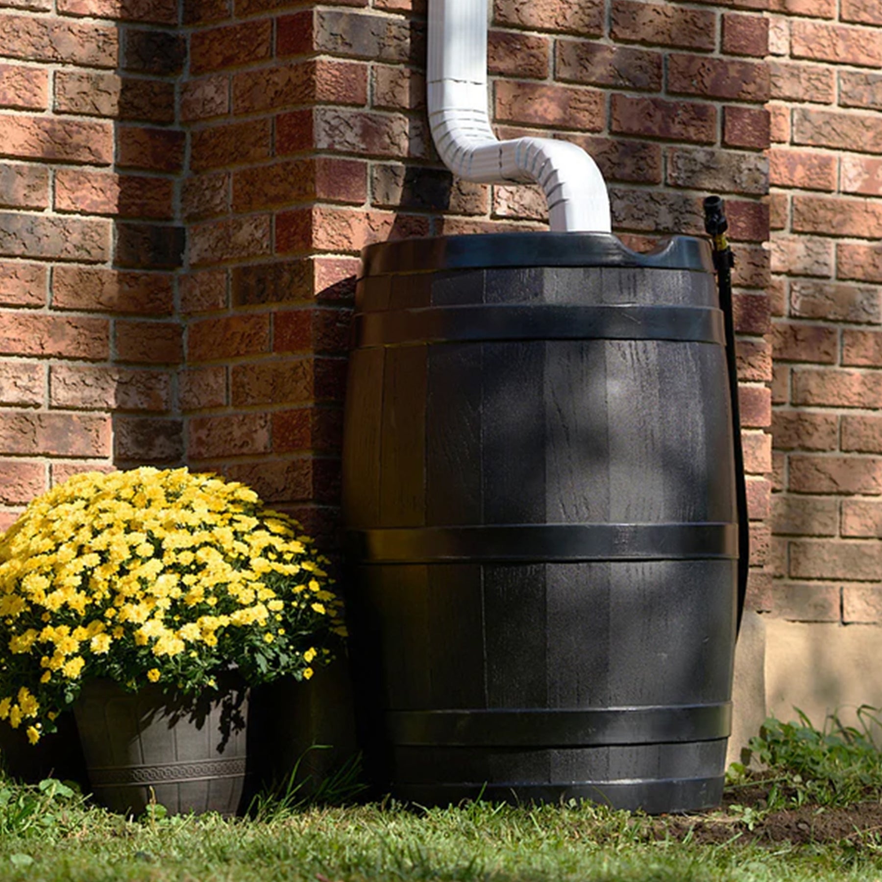 • Large, 45-gallon capacity rain barrel with the appearance of traditional wood