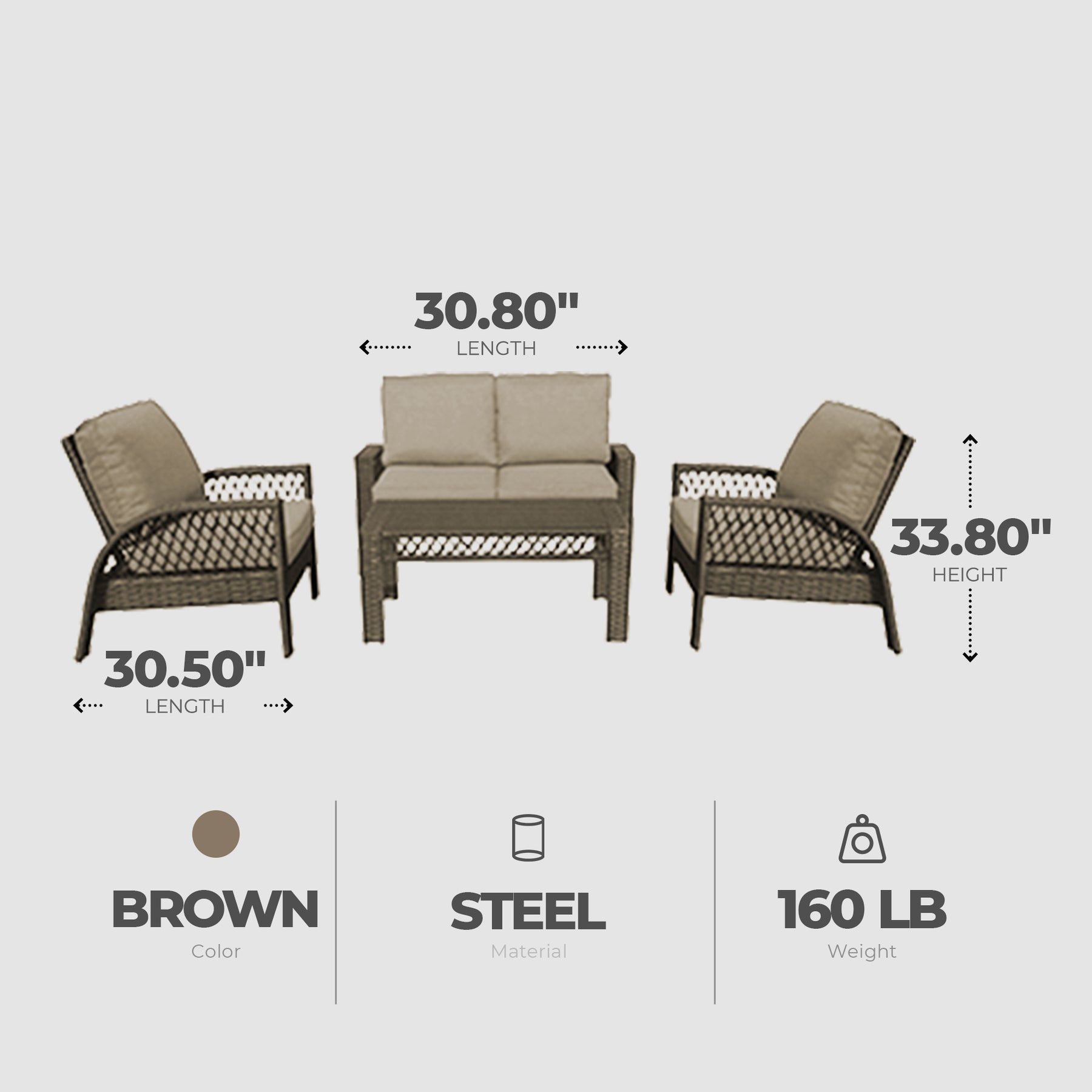 Indulge in the ultimate comfort provided by thick olefin fabric cushions, inviting you to unwind and savor the moments of tranquility. The set's thoughtful design includes 2 chairs, a loveseat, and a painted glass-top coffee table, balancing functionality and aesthetics. The durable steel frame, E-coated for rust protection, guarantees longevity, making it a wise investment in enhancing your outdoor lifestyle.