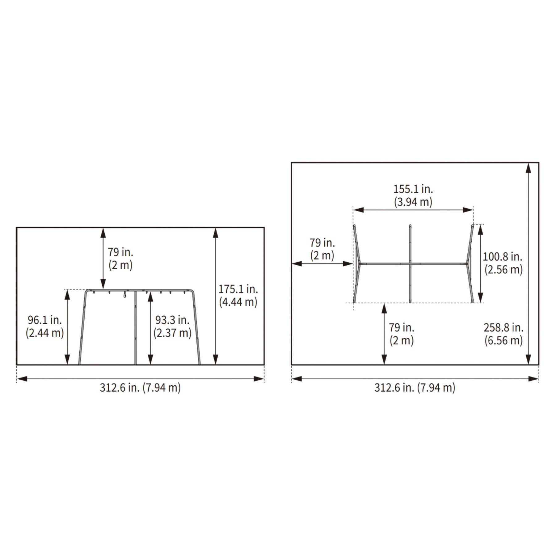 - Enjoy a swing set with a footprint of nearly 13 feet (3.9 meters) in length and 8.4 feet in depth (2.5 meters), providing ample room for endless fun for kids aged 3 to10