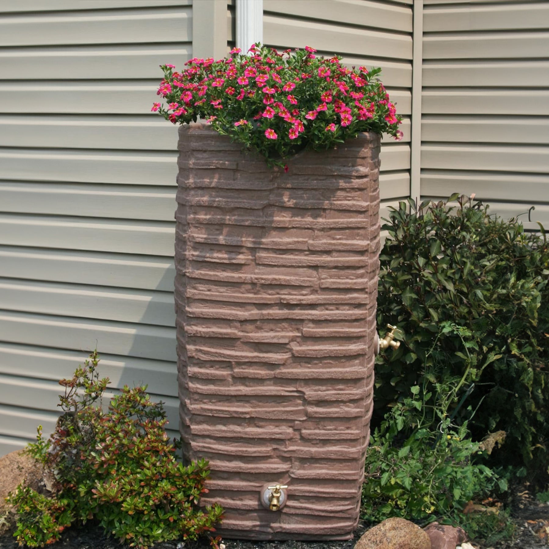 • Substantial 50-gallon rain barrel thoughtfully designed with an integrated planter top to collect rainwater for your sustainable watering needs