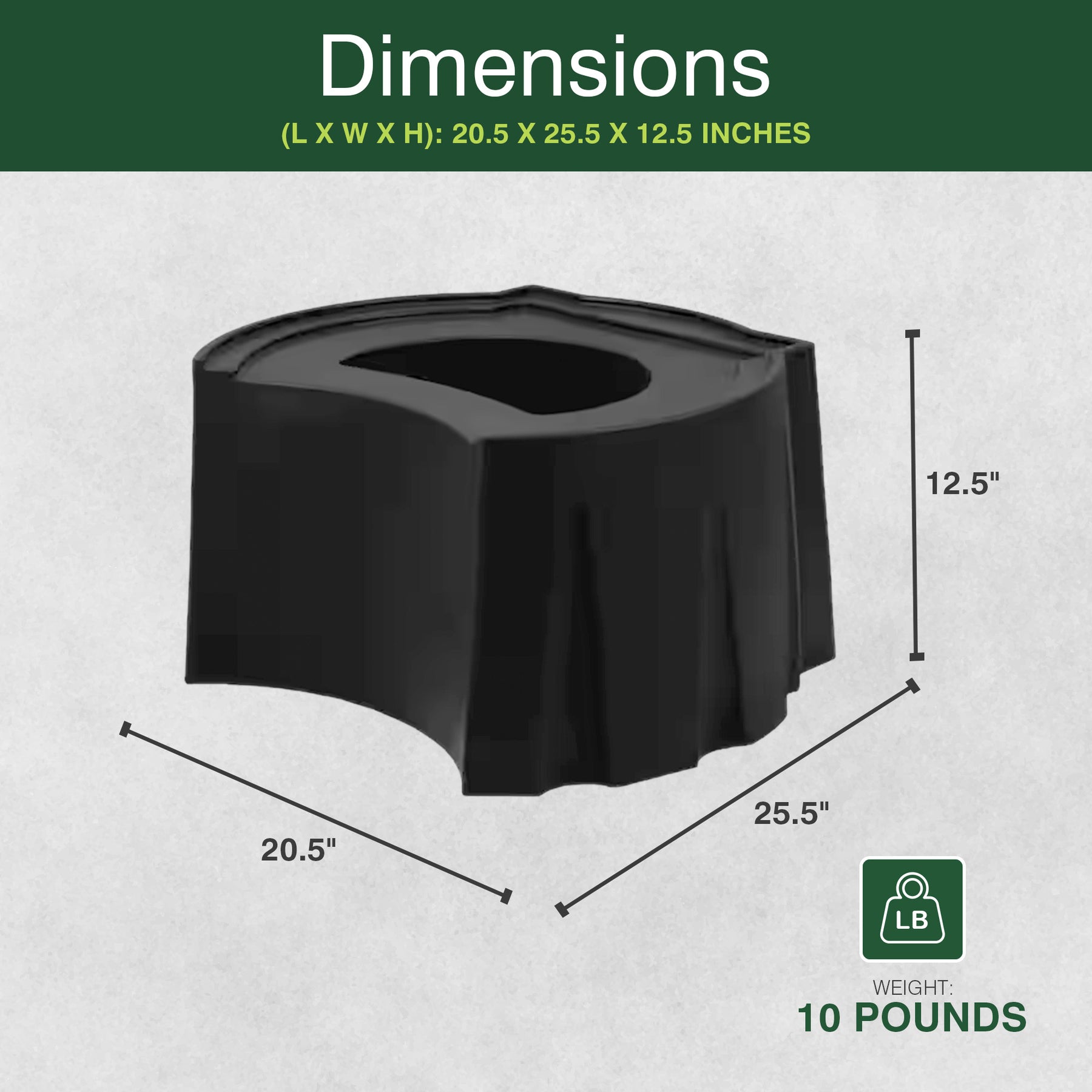 • Dimensions (L x W x H): 20.5 x 25.5 x 12.5 inches