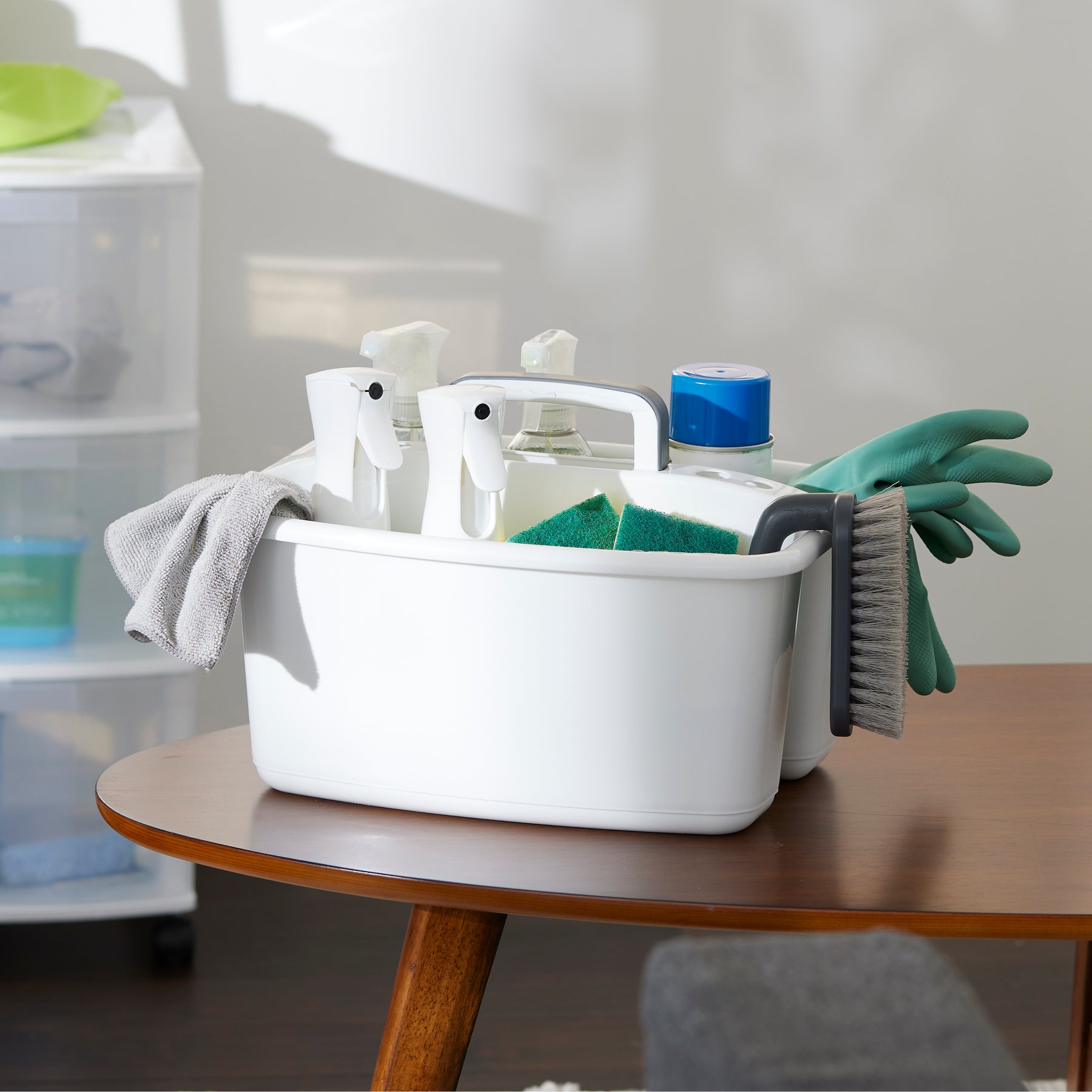 Gracious Living Large Home Storage Caddy, White w/Gray Carry Handle (Open Box)