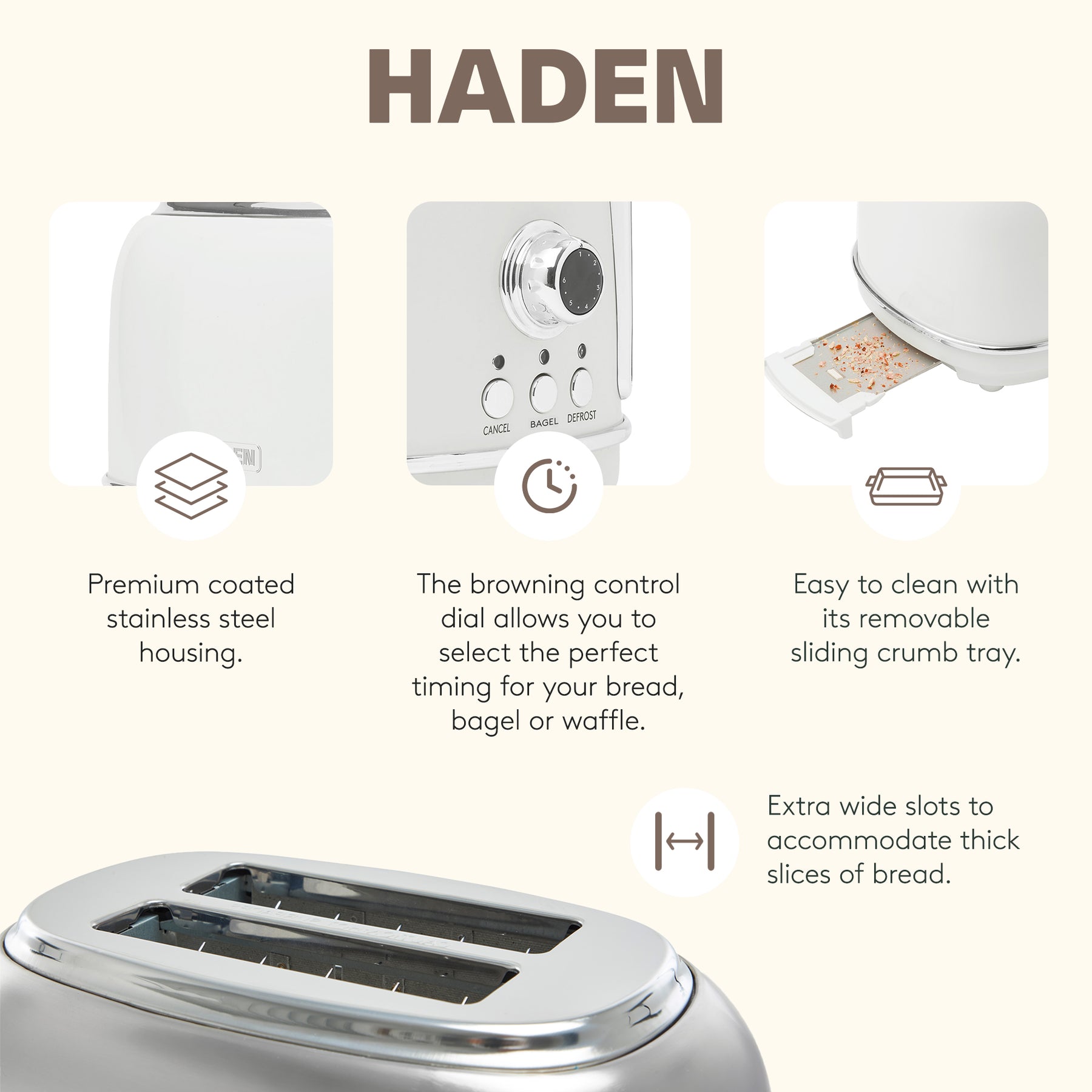 Haden Heritage 1.7 L Stainless Steel Electric Kettle with 2 Slice Toaster, White