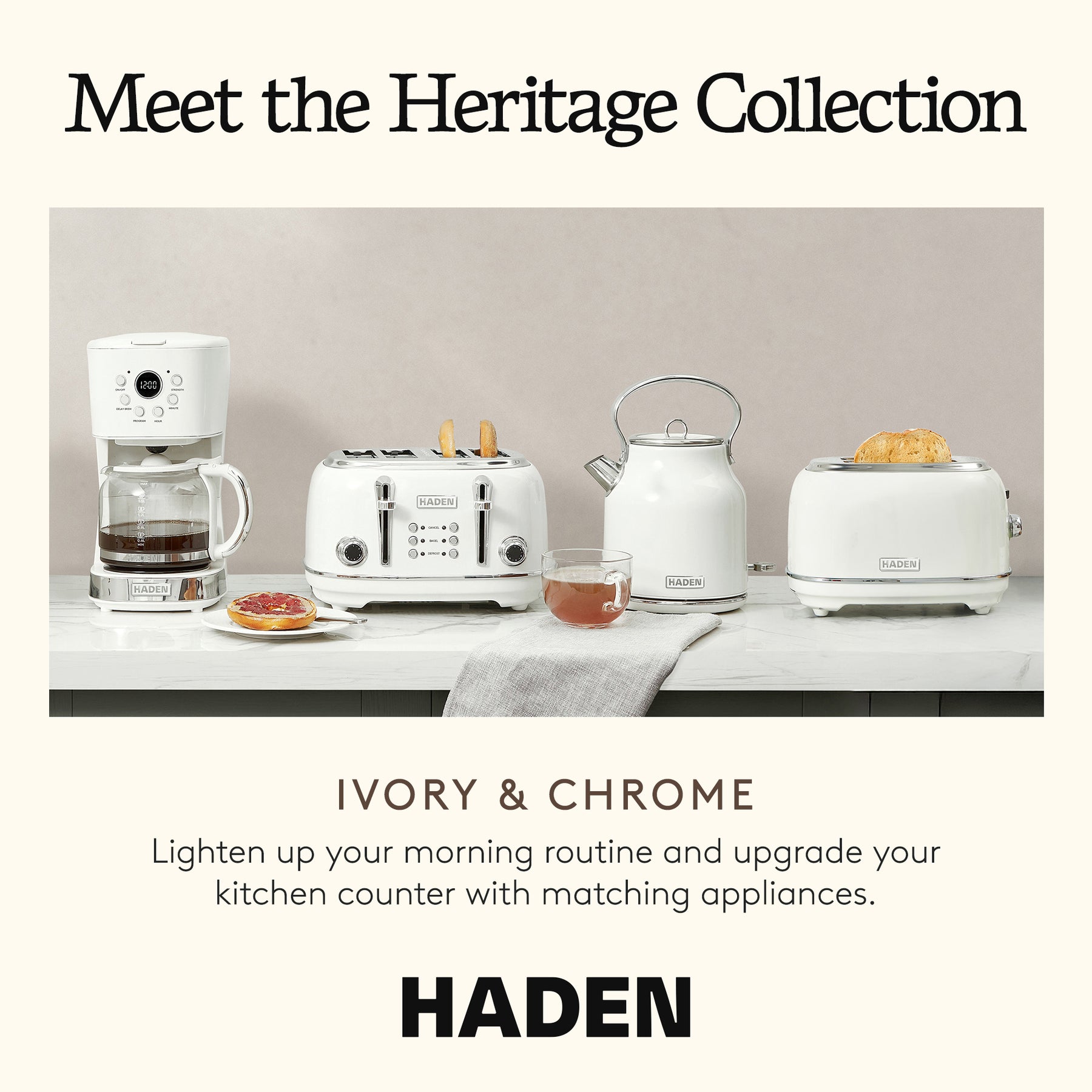 Kitchen appliances are all about convenience and versatility, and you'll get just that with the Haden Heritage 1.7 Liter Stainless Steel Electric Kettle and 2 Slice Toaster.