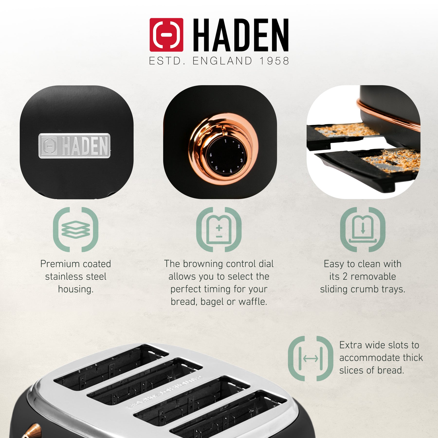 Haden Heritage 4 Slice Wide Slot Toaster & 12 Cup Coffee Maker, Black & Copper