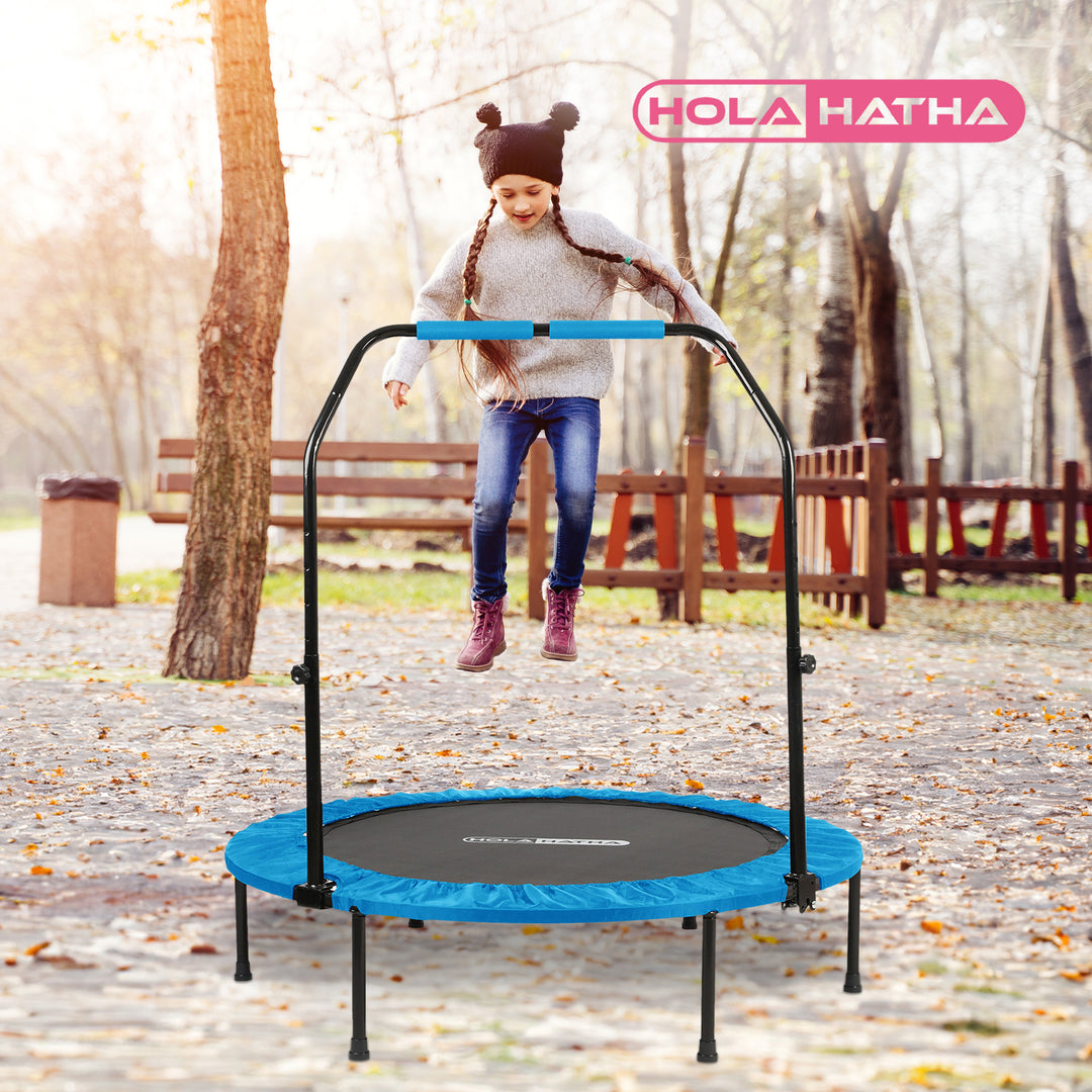 HolaHatha 40" Mini Trampoline Fitness Rebounder with Adjustable Handle, Blue
