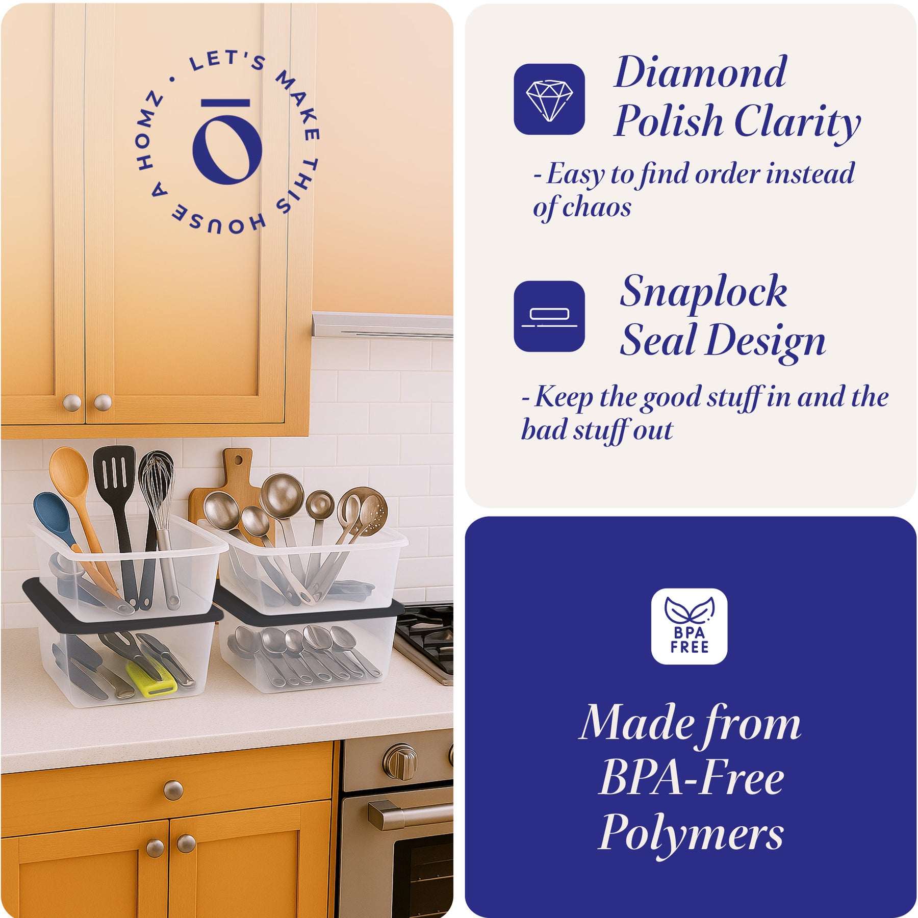 - Set of 4 containers ideal for storing office supplies, kitchen utensils, seasonal decor items, and more