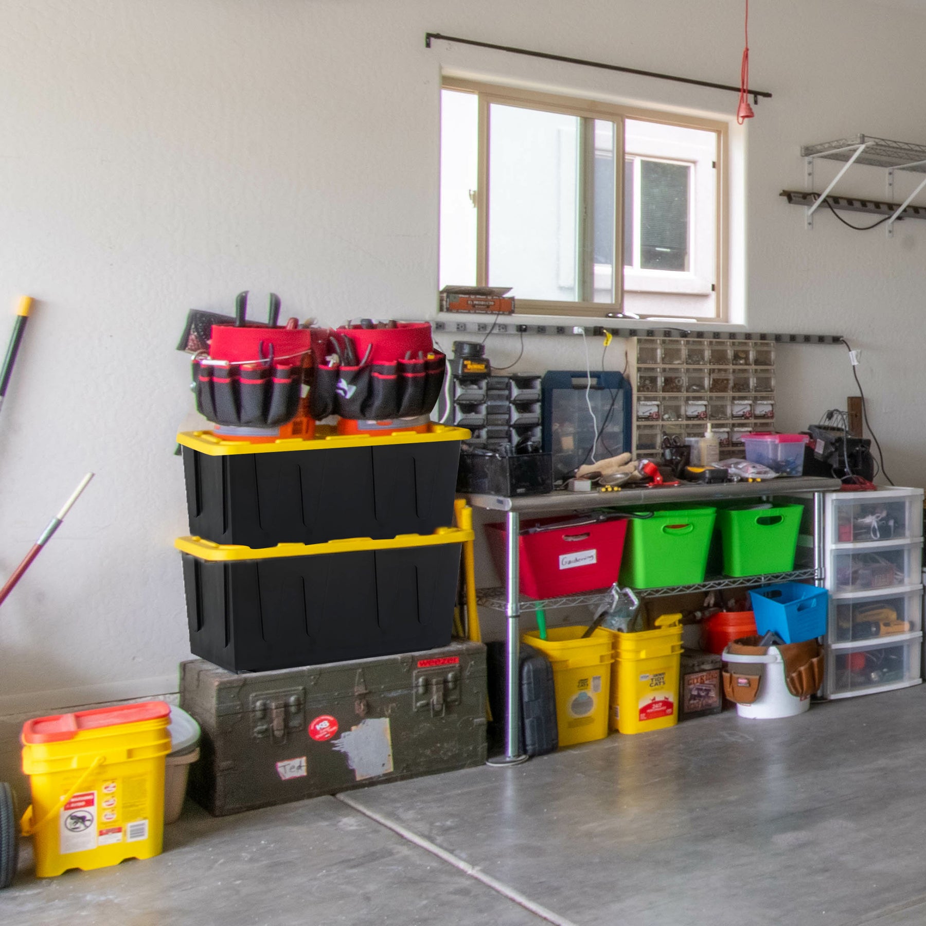 These storage tubs are constructed from impact-proof, heavy-duty plastic that can withstand ongoing use. The 15-gallon storage capacity creates an ideal storage system for storing tools, sports gear, camping equipment, clothing, and holiday decorations. Keep your cherished items pristine and shielded from external elements. The reliable snap lids that seal the deal on protection provide a steadfast barrier against dust, moisture, and unwanted intrusions. Innovatively designed with 6 hasp areas, these storage boxes guarantee that your belongings remain secure. Attach tie-down straps or locks effortlessly, adding an extra layer of security to your supplies, collectibles, and more.