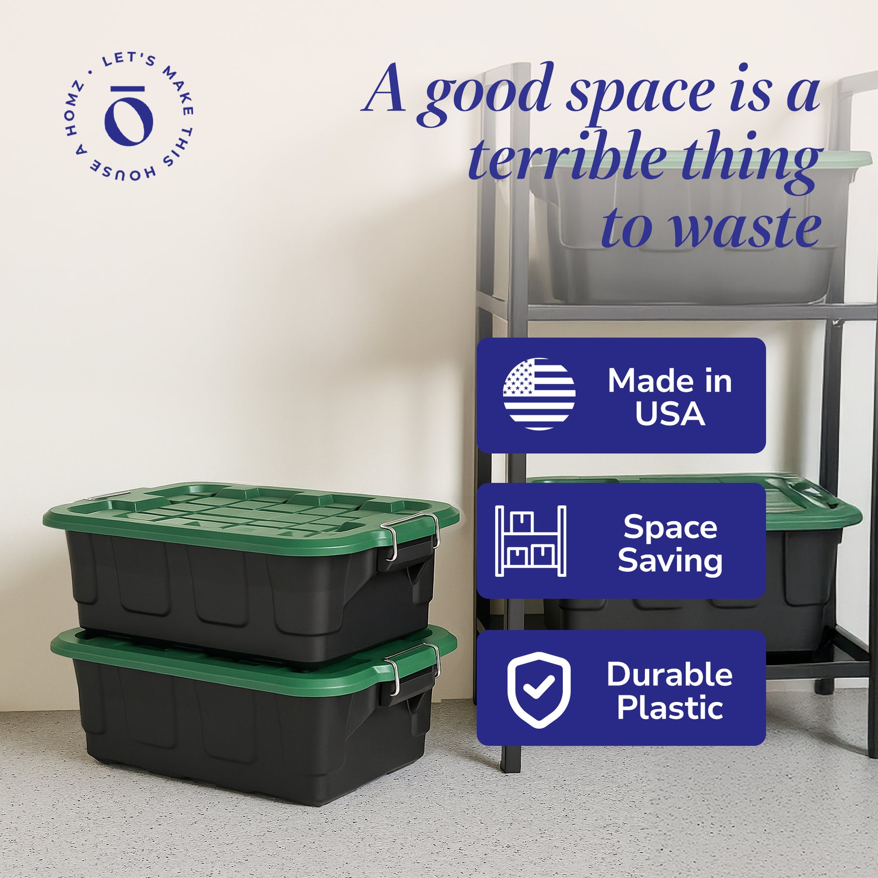 • Stackable bins can interlock to ensure the bins remain secure and provide a space-efficient storage solution in your garage, basement, or shed space