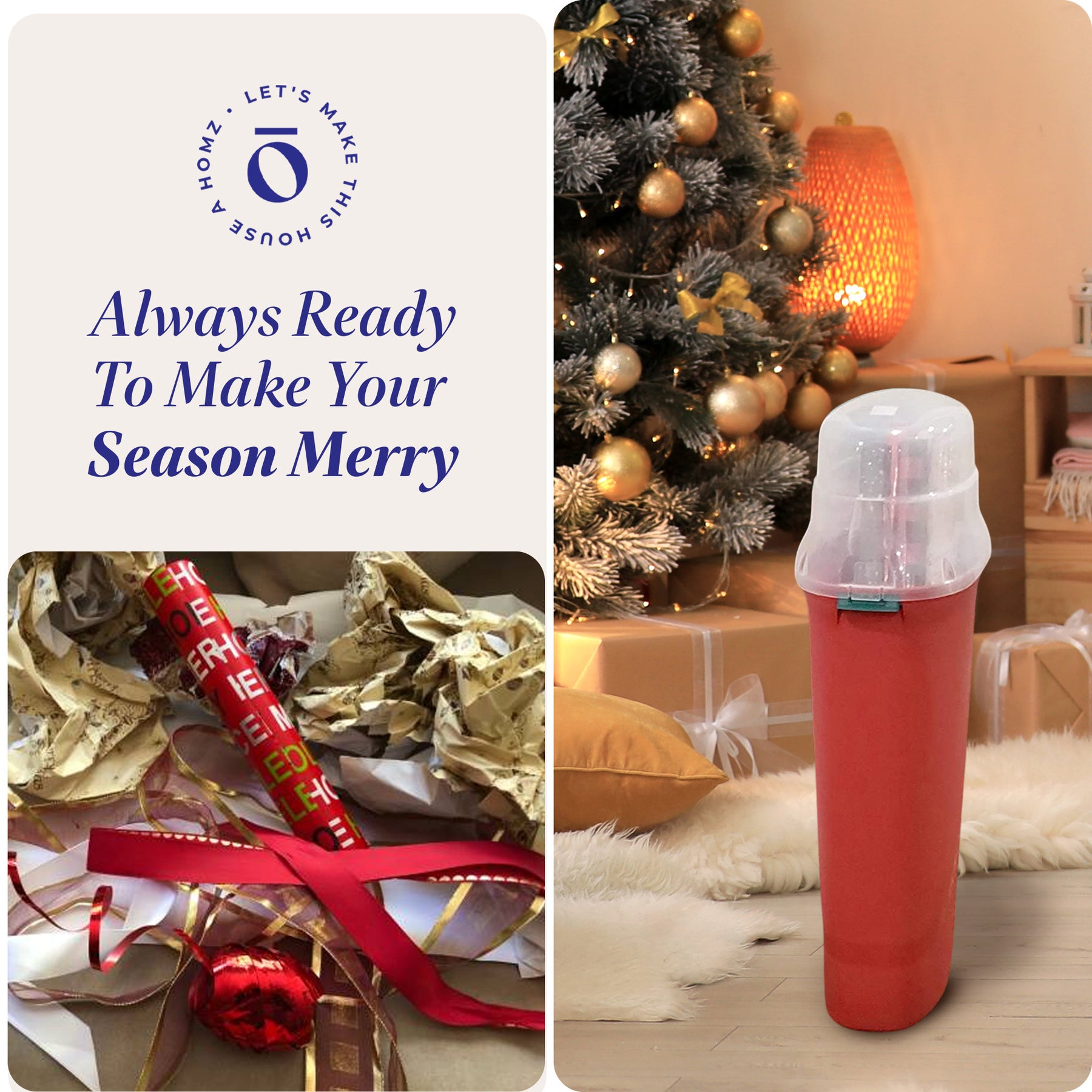 • Easy-access gift wrapper storage container to easily store and organize multiple rolls of gift wrap