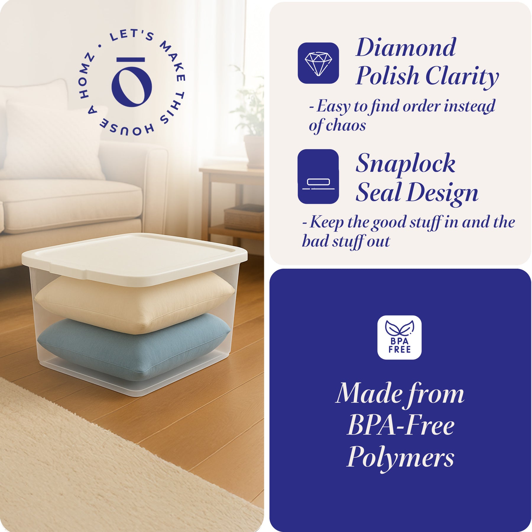 Get the most out of your space with the 2-pack of Homz Plastic Storage Containers. Ideal for storing away holiday decor, shoes, office supplies, kitchen utensils, and so much more, the opportunities with these totes are endless.