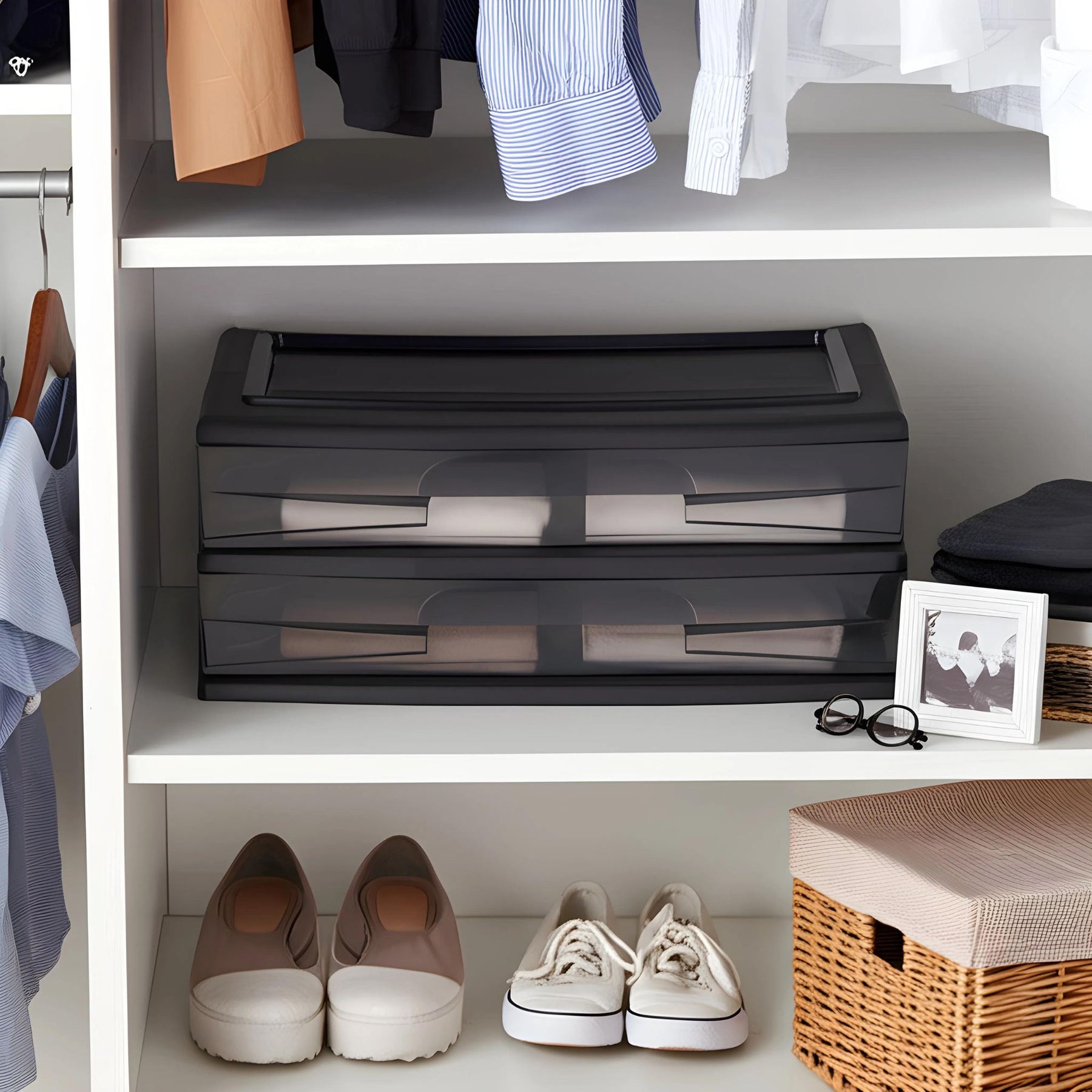 • Smoke-tint drawer design with easy-access handles makes it easy to hide your storage contents for a clean look