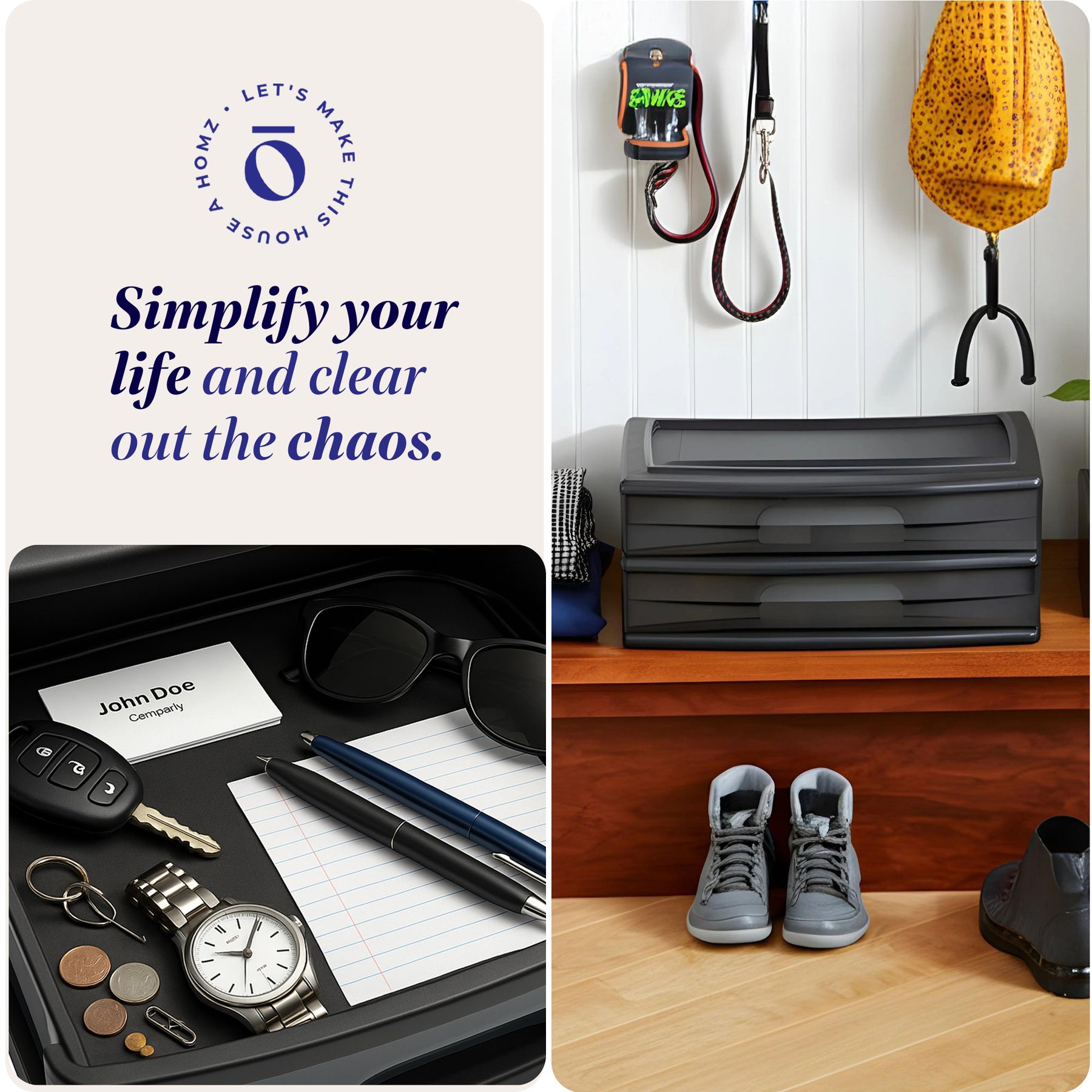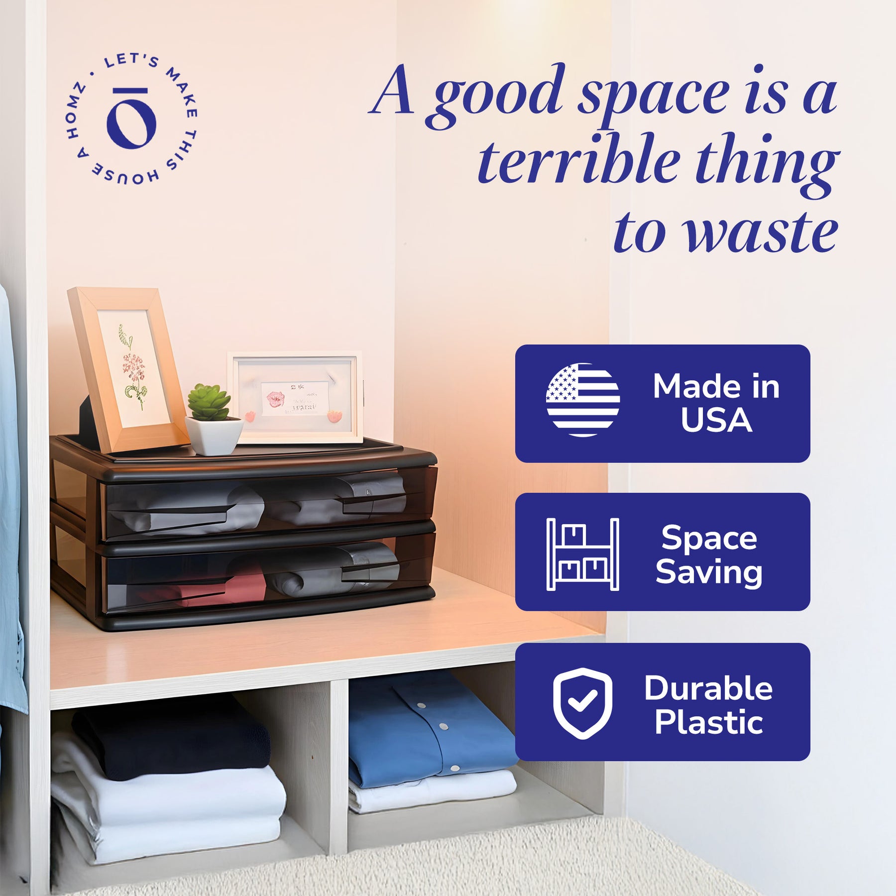 Homz Plastic 2 Drawer Wide Storage Cart, Black with Smoke Drawer, 2PK (Open Box)