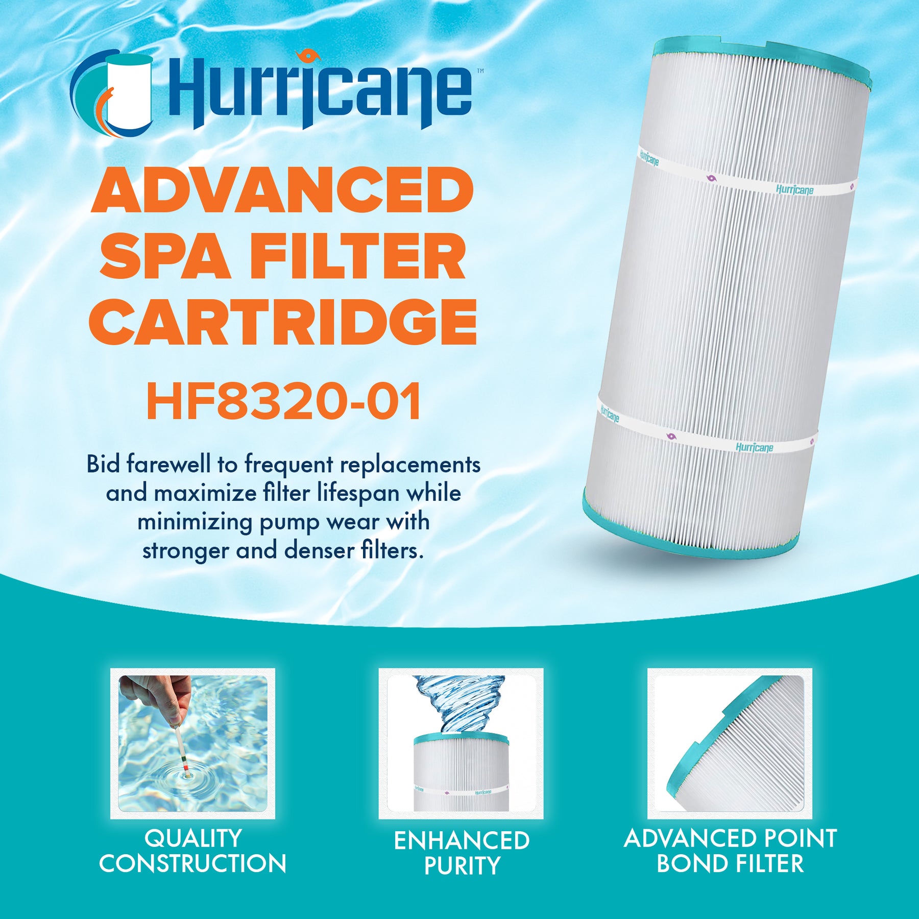 Dive into the realm of pristine waters with the Hurricane HF8320-01 Advanced Cartridge Filter, where unparalleled cleanliness awaits. Crafted with meticulous precision, this filter guarantees seamless compatibility with a range of models including PSD125, Unicel C-8320, Filbur FC-2750, and Sundance 120. With dimensions measuring 18.25 inches in length, an outer diameter of 8.25 inches, and top and bottom holes being 2.63 inches, achieving an ideal fit is effortless, just measure your current filter for a flawless match.