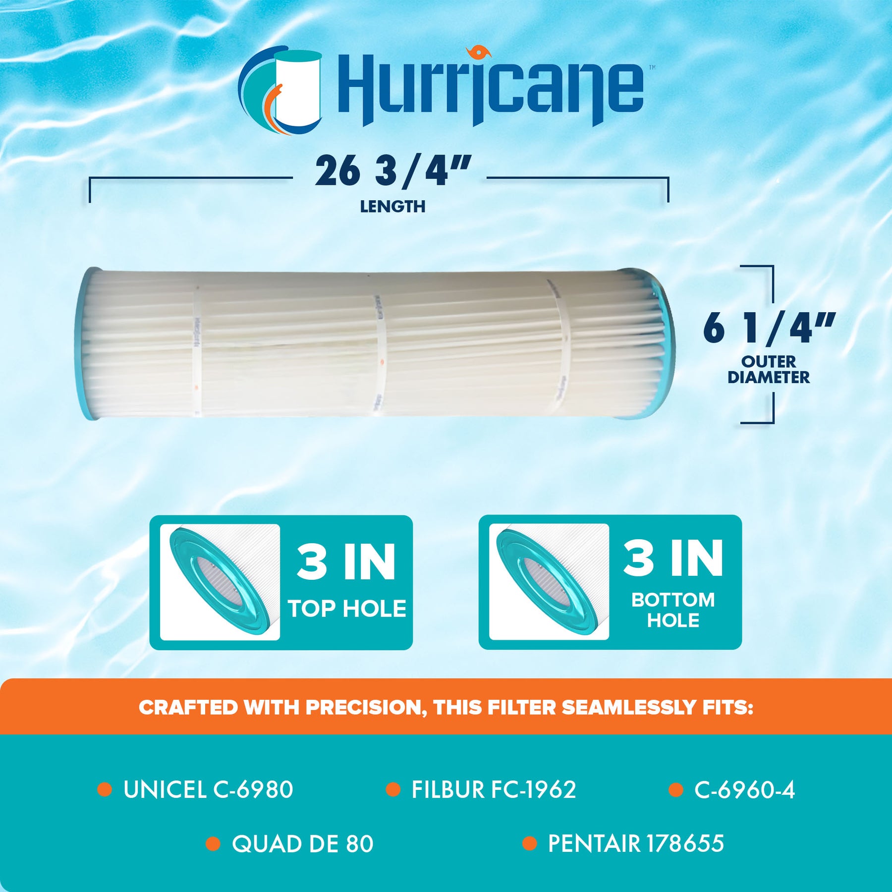 - Hurricane HF6980-01 DE Cartridge Filter is compatible for Unicel C-6980, Filbur FC-1962, Pentair 178655, C-6960-4, Quad DE 80 and other compatible models