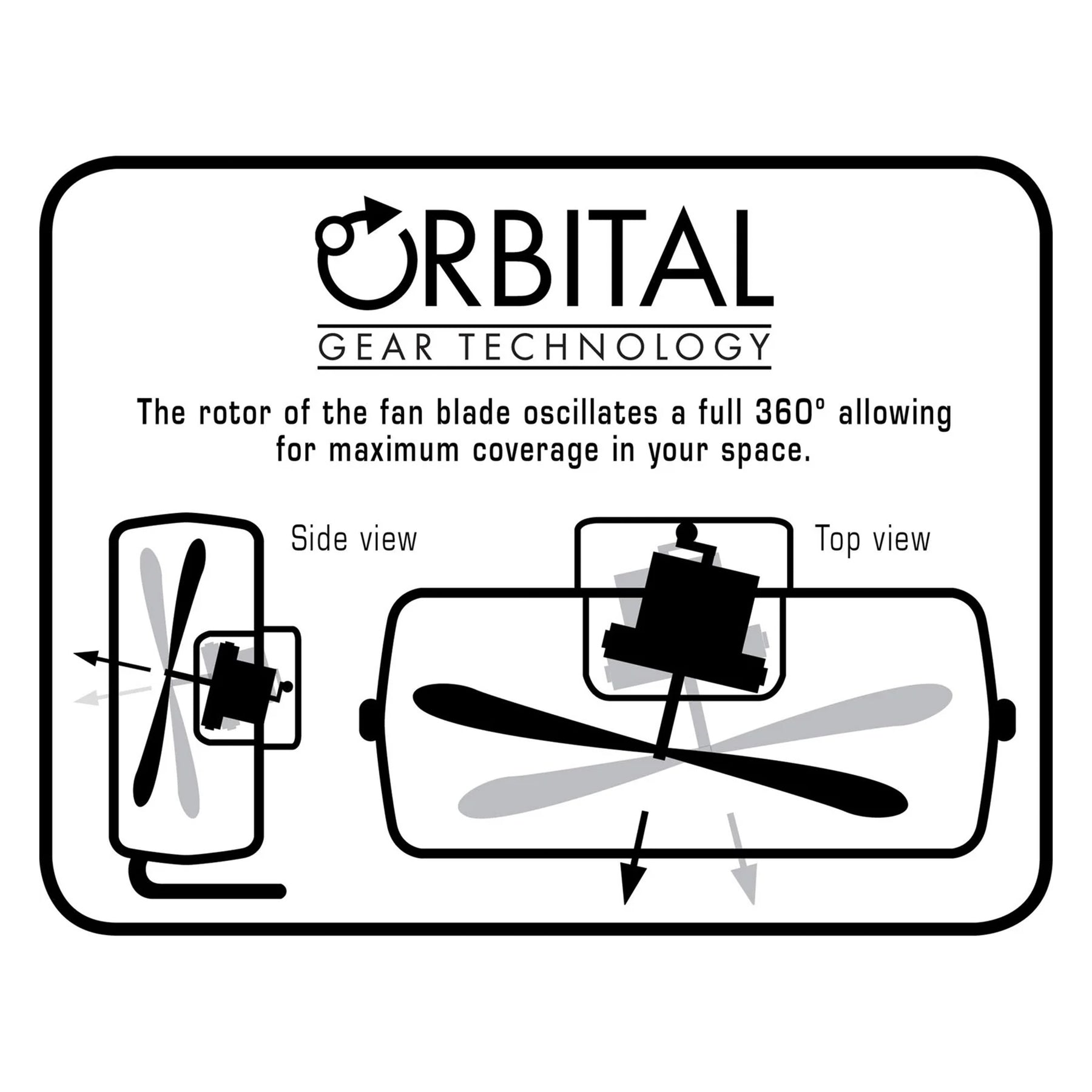 • Showcasing orbital gear technology, the fan's rotor oscillates a full 360 degrees, ensuring maximum coverage in your chosen space and creating a consistent breeze throughout