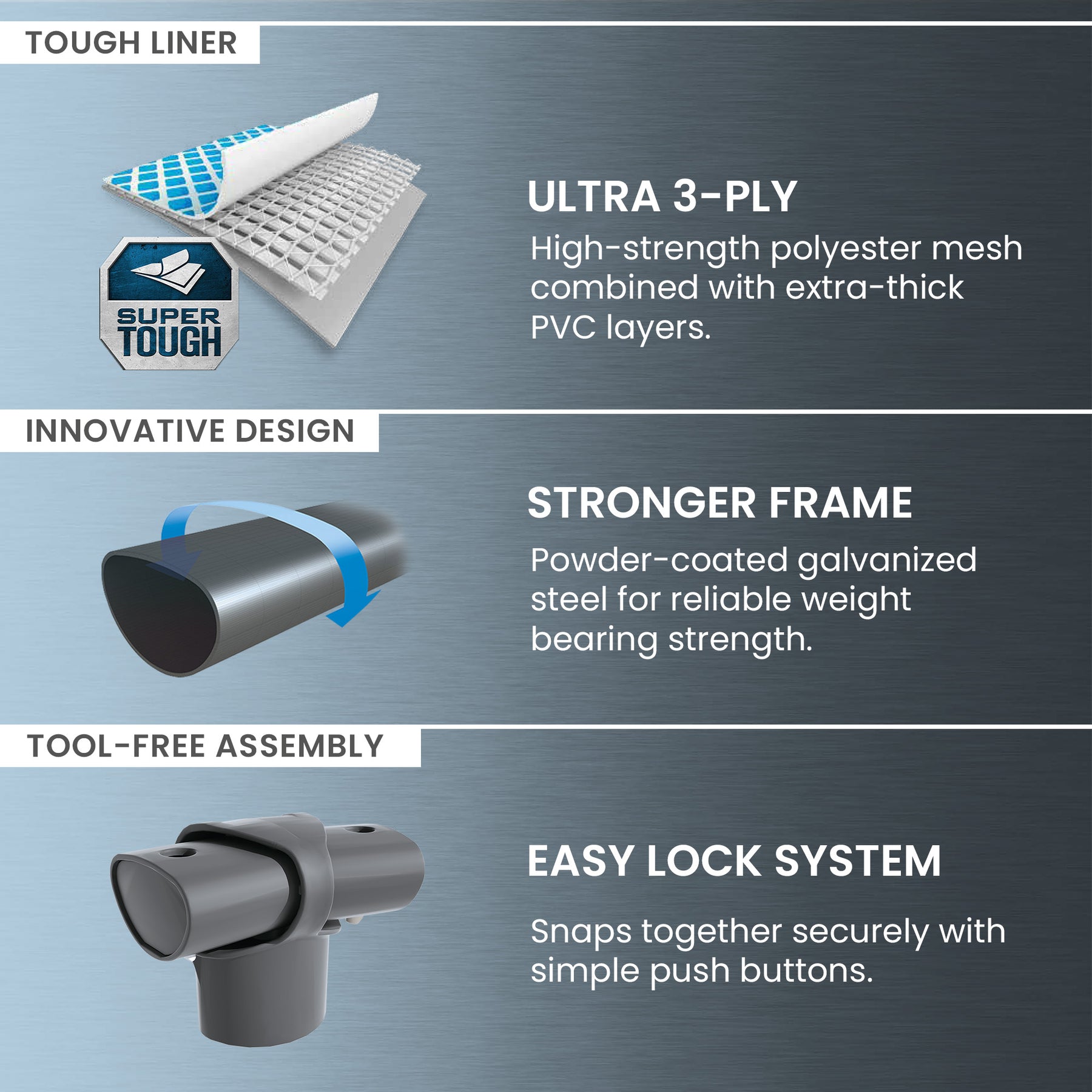 • Durable frame is made of high-quality, galvanized steel with precision-engineered locking system