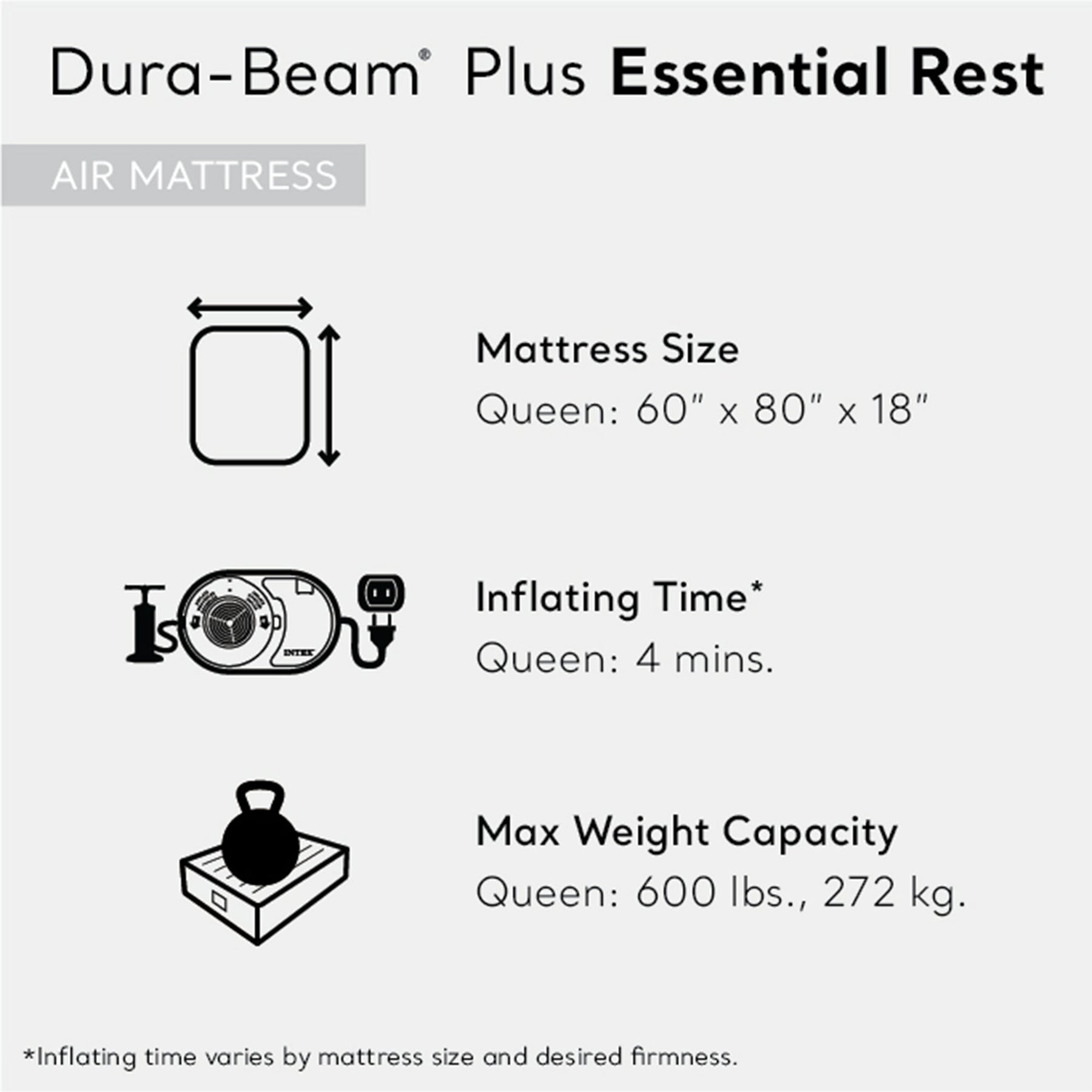 Intex Dura Beam Rest Blow Up Queen Mattress Air Bed with Built In Pump (Used)