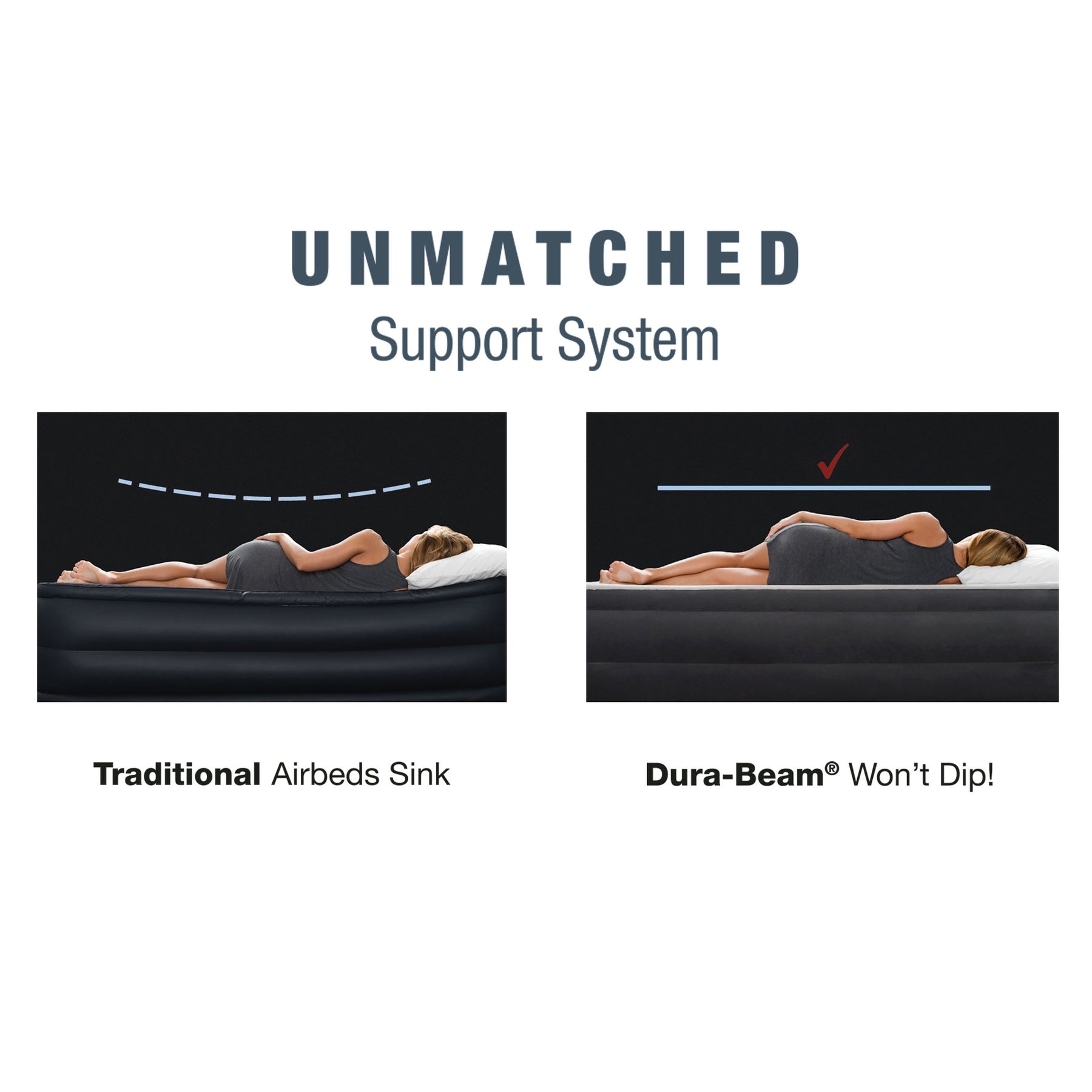 • Built-in pump electrically inflates and deflates the mattress for super convenient setup and takedown process