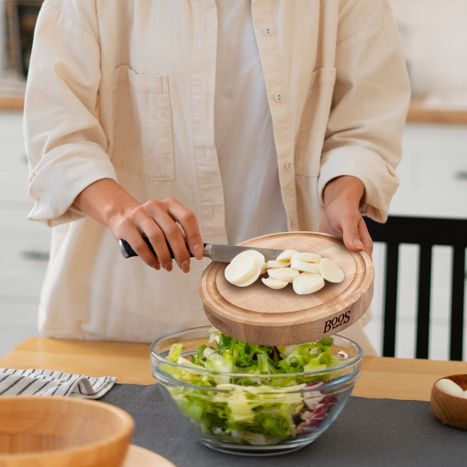 Whether you're preparing food for the holidays or need to make quick prep, the John Boos Round 12-Inch Butting Board is the cooking accessory you've been looking for. Through a legacy of workmanship, innovation, and devotion stemming from our founder to employees, past and present, John Boos aspires to be recognized worldwide as a touchstone at the heart of cooking and enjoyment of food.